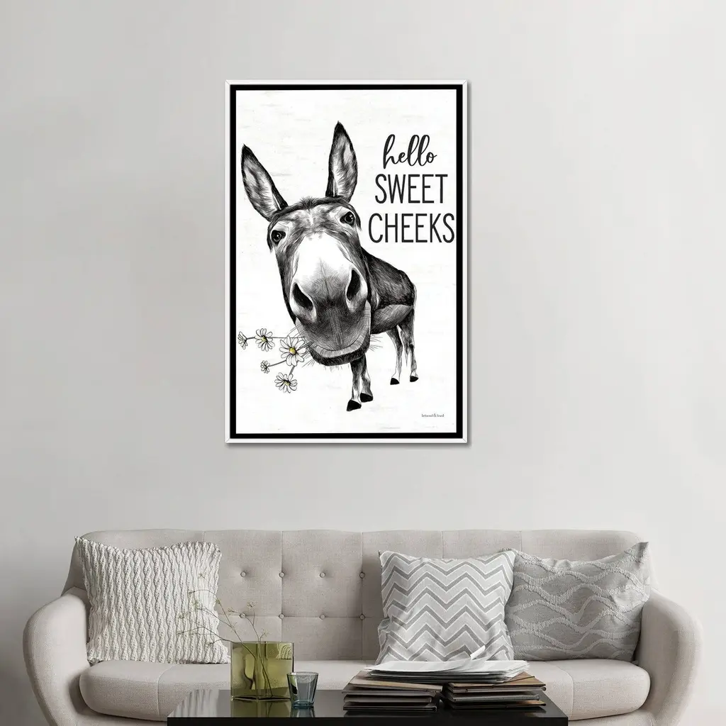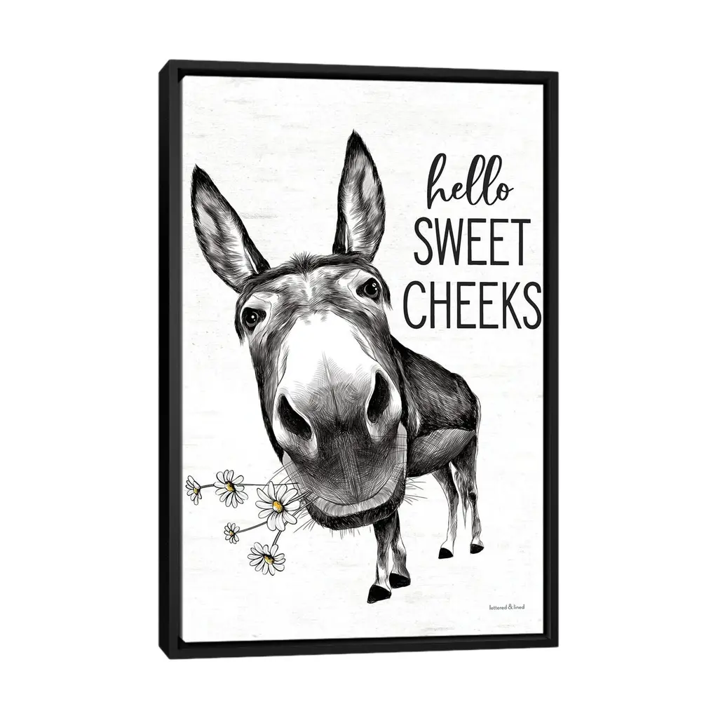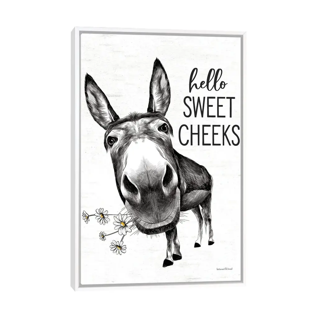 Icanvas "Hello Sweet Cheeks Donkey" By Lettered & Lined Framed Canvas Print - Black - 48x32