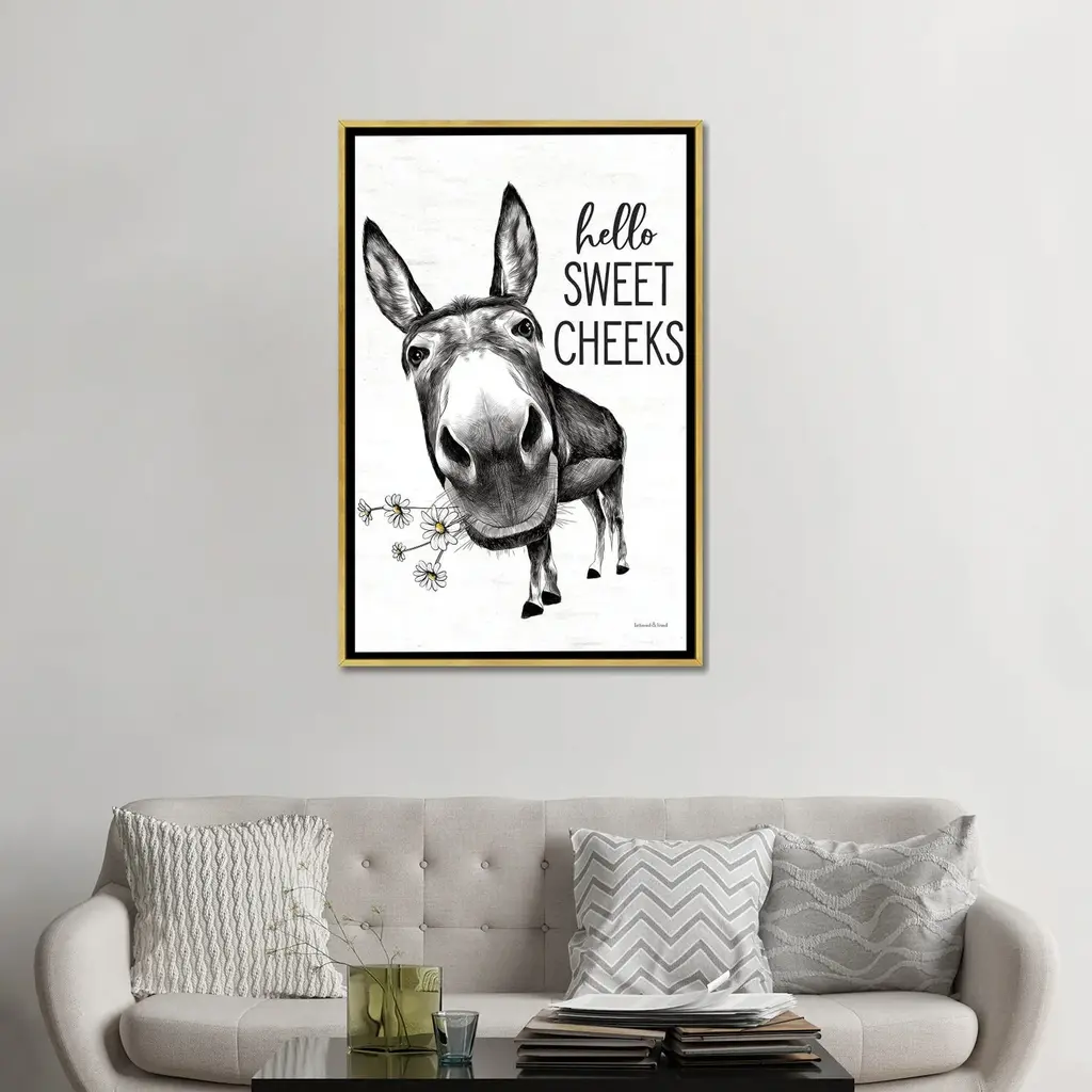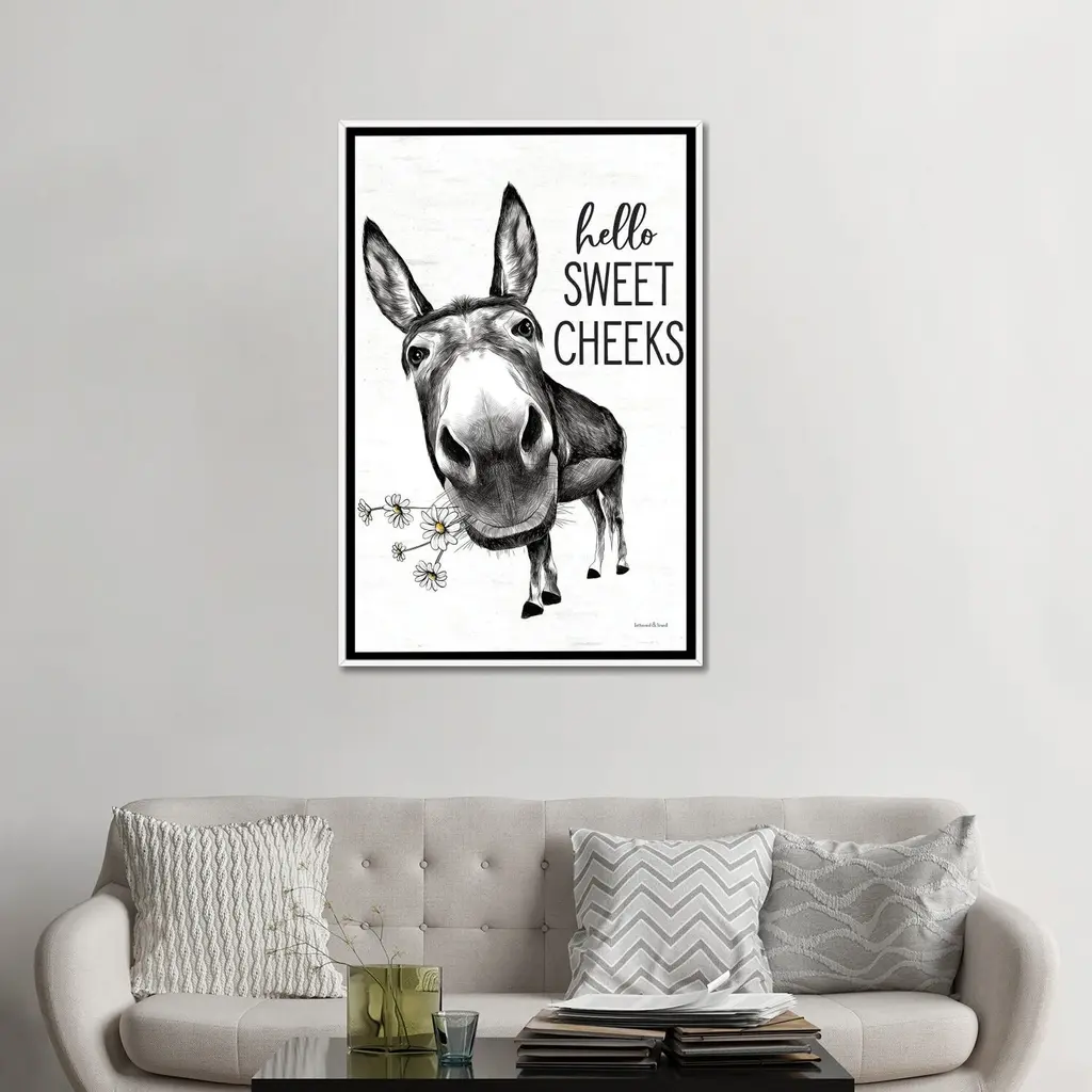 Icanvas "Hello Sweet Cheeks Donkey" By Lettered & Lined Framed Canvas Print - White - 26x18