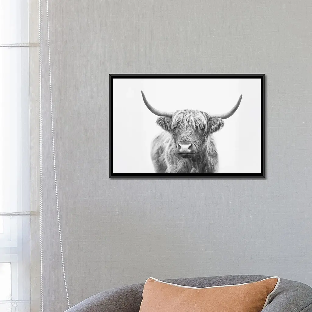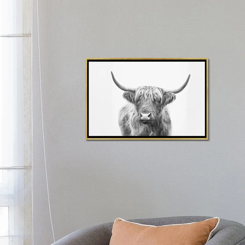 Icanvas "Highland Bull" By Sisi & Seb Framed Canvas Print - Black - 18x26