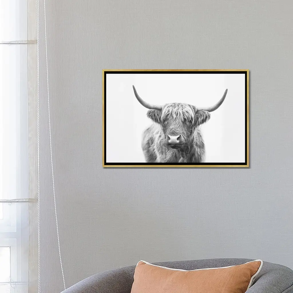 Icanvas "Highland Bull" By Sisi & Seb Framed Canvas Print - White - 18x26