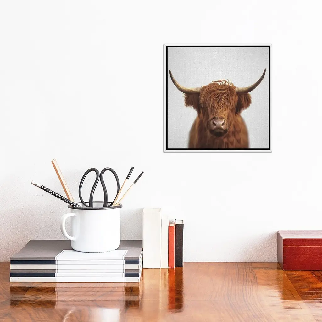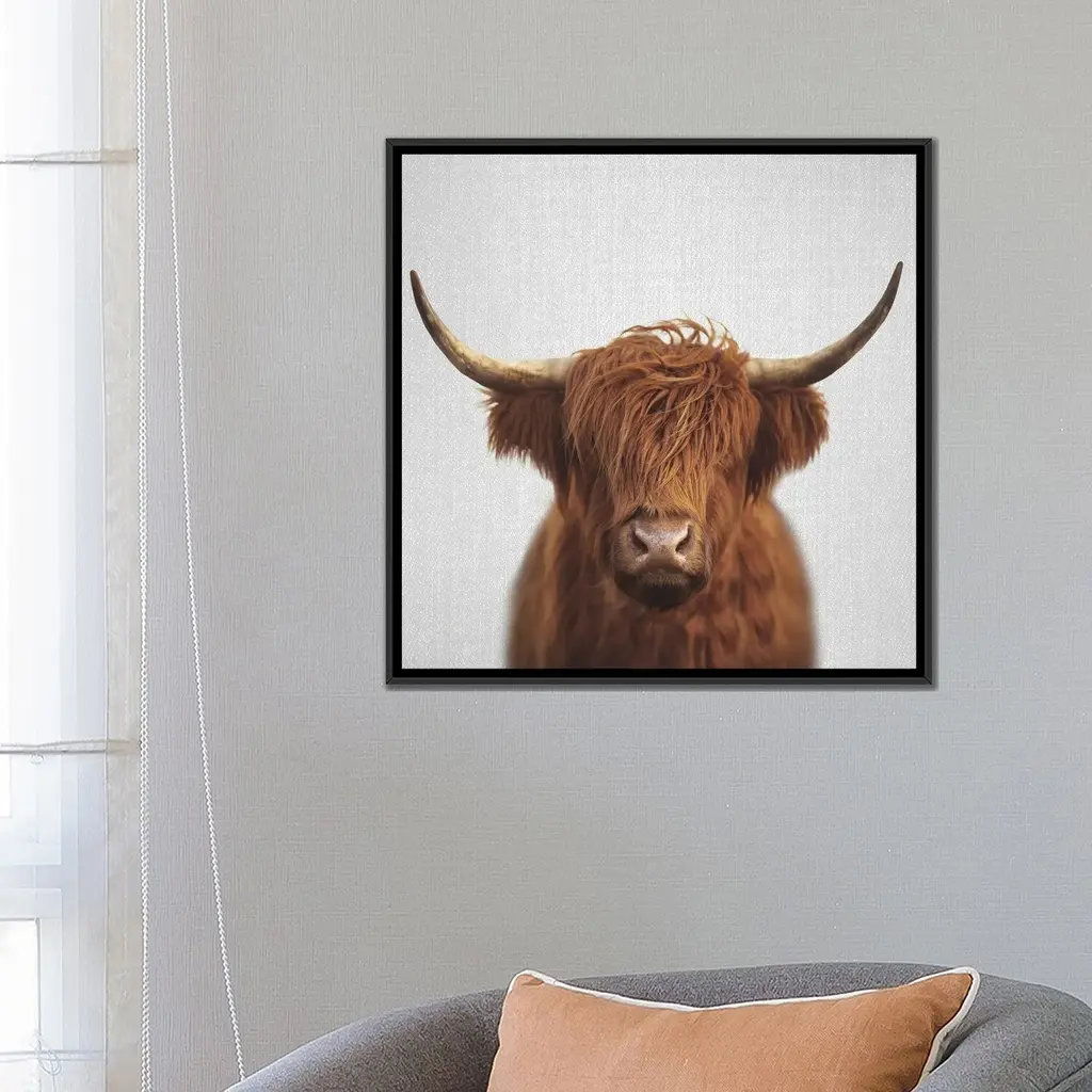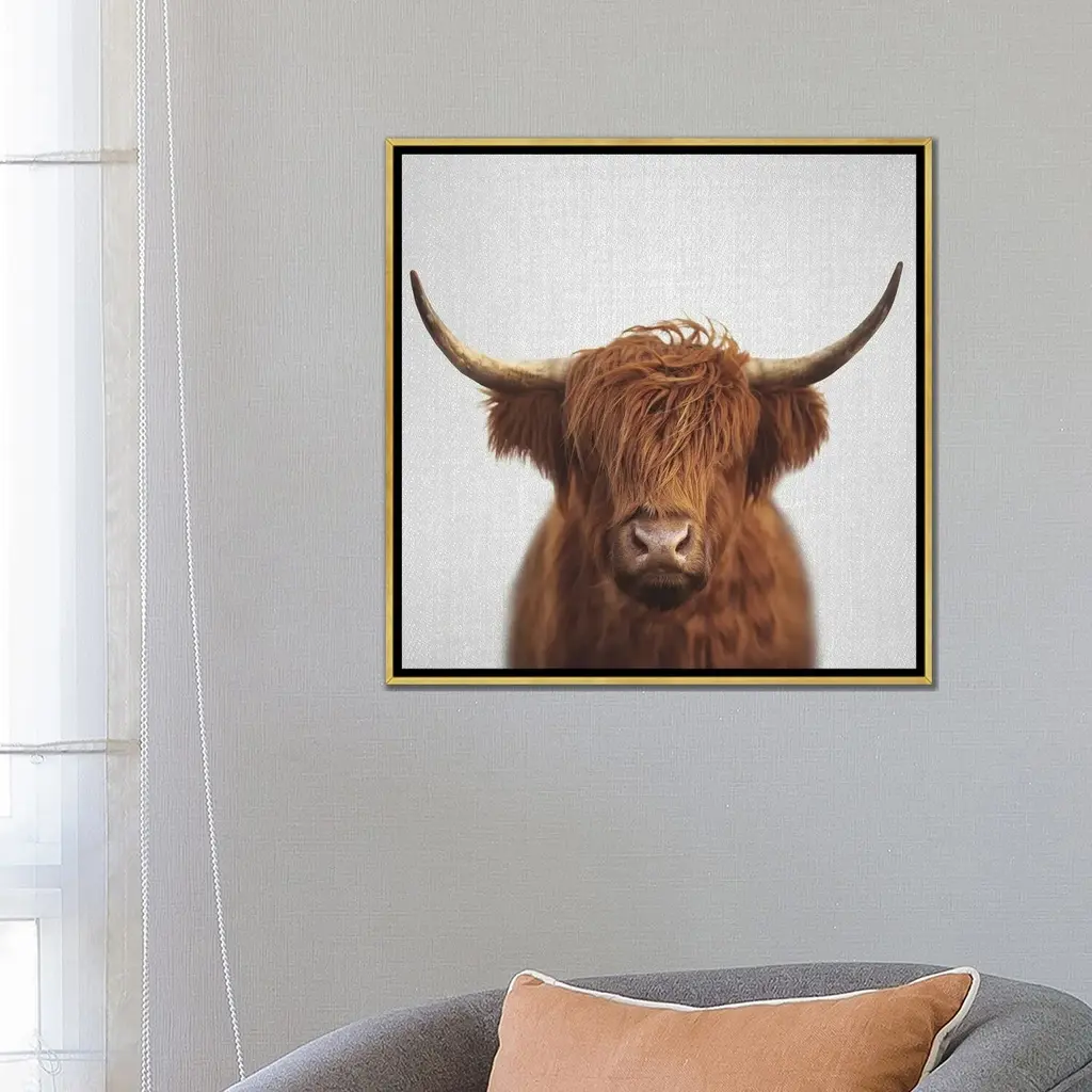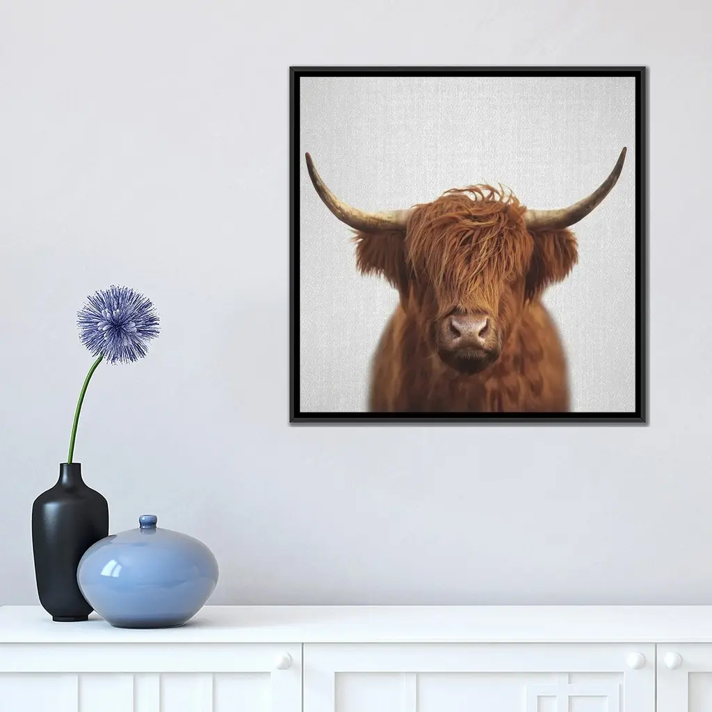 Icanvas "Highland Cow" By Gal Design Framed Canvas Print - Black - 12x12