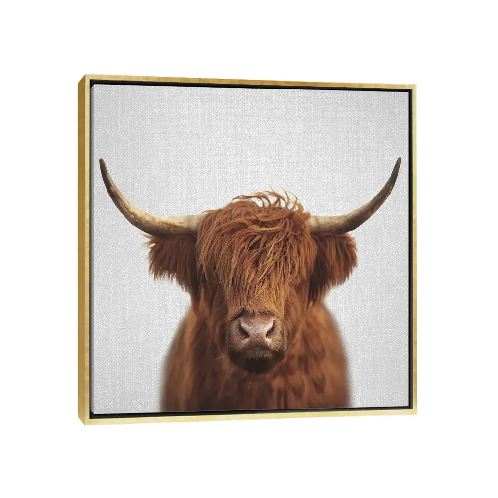 Icanvas "Highland Cow" By Gal Design Framed Canvas Print - Black - 18x18