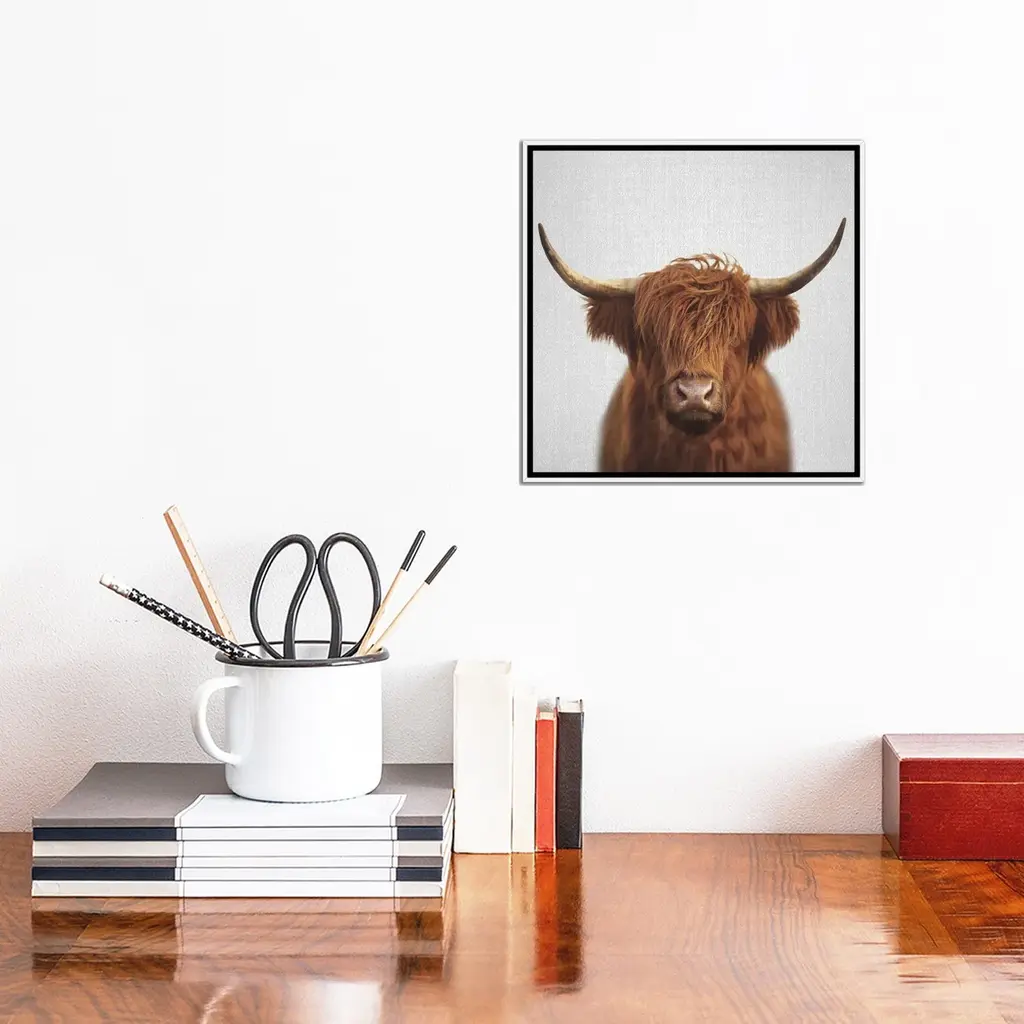 Icanvas "Highland Cow" By Gal Design Framed Canvas Print - Black - 26x26