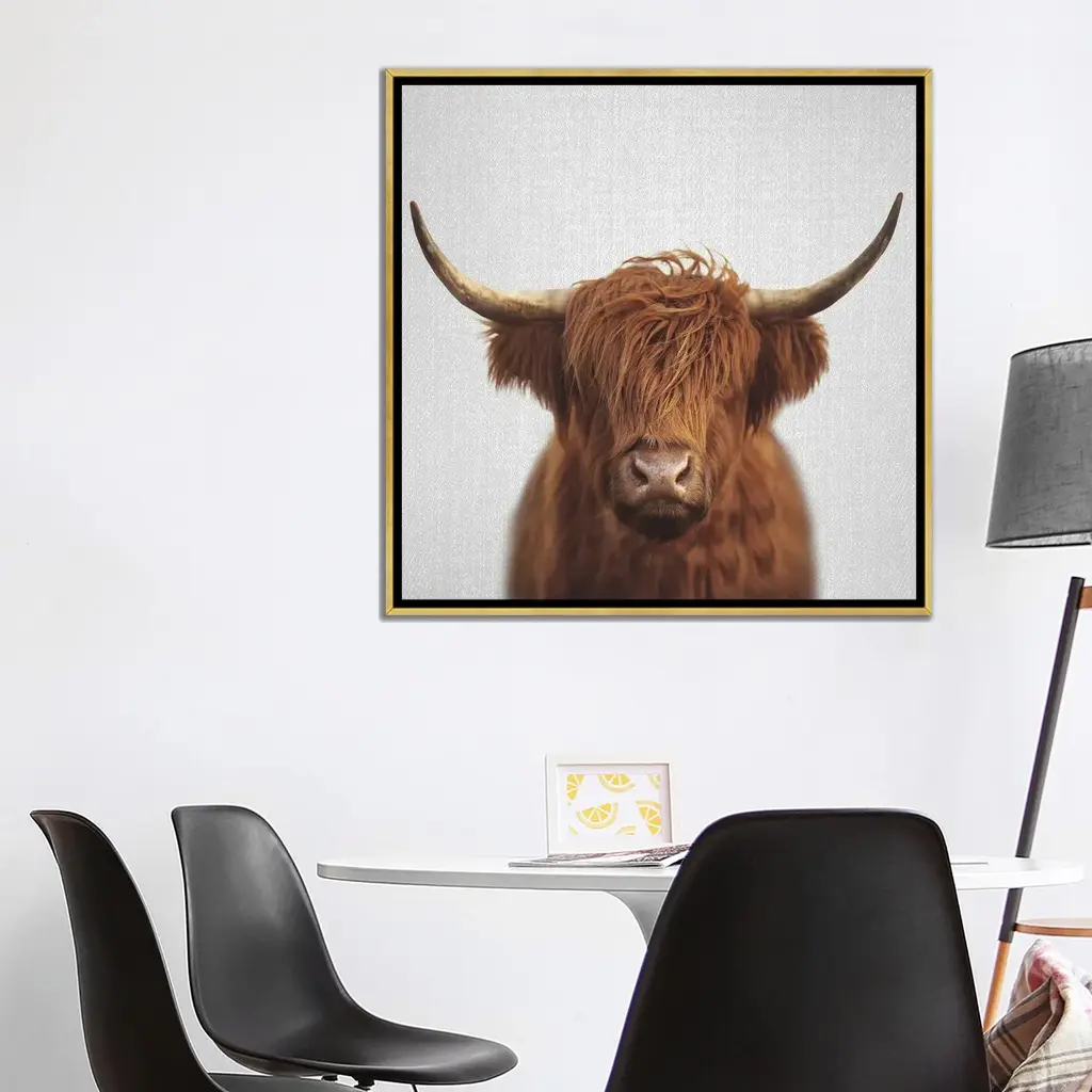 Icanvas "Highland Cow" By Gal Design Framed Canvas Print - Gold - 12x12