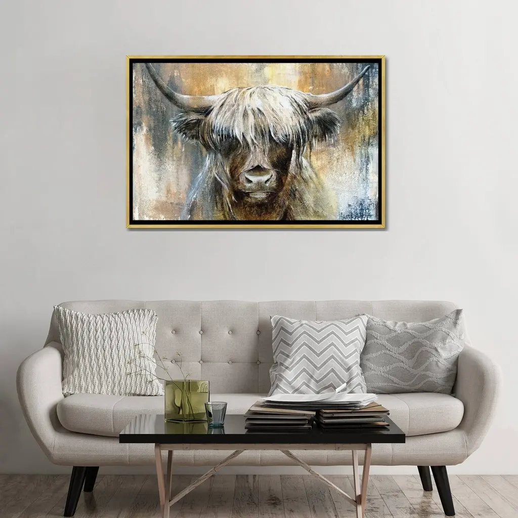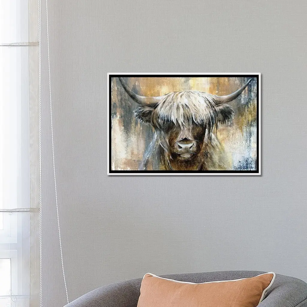 Icanvas "Highland Cow I" By Studio Paint-Ing Framed Canvas Print - Black - 32x48