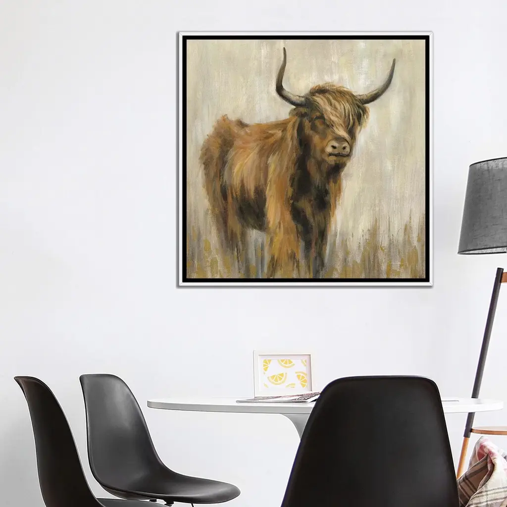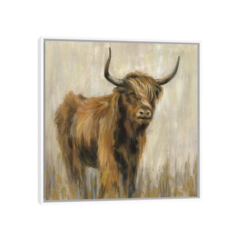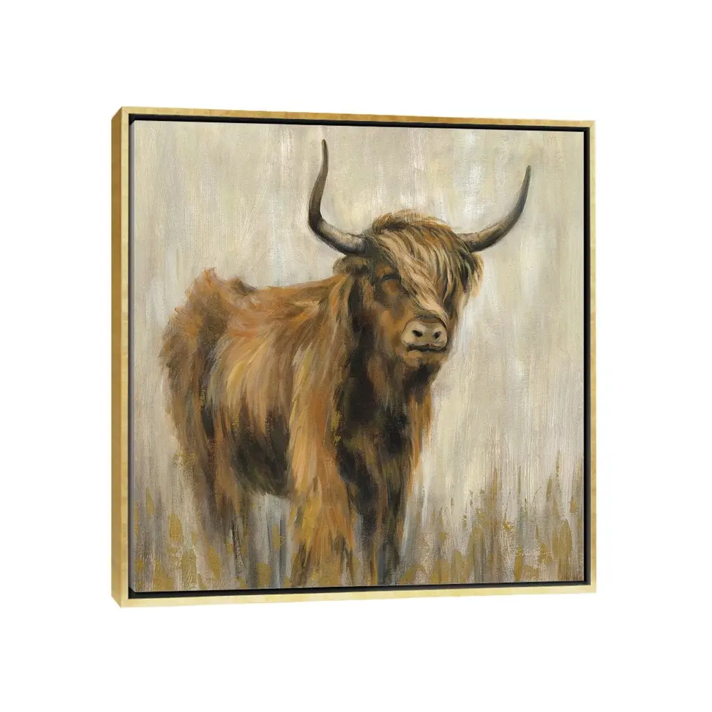 Icanvas "Highland Mountain Cow" By Silvia Vassileva Framed - Black - 18x18