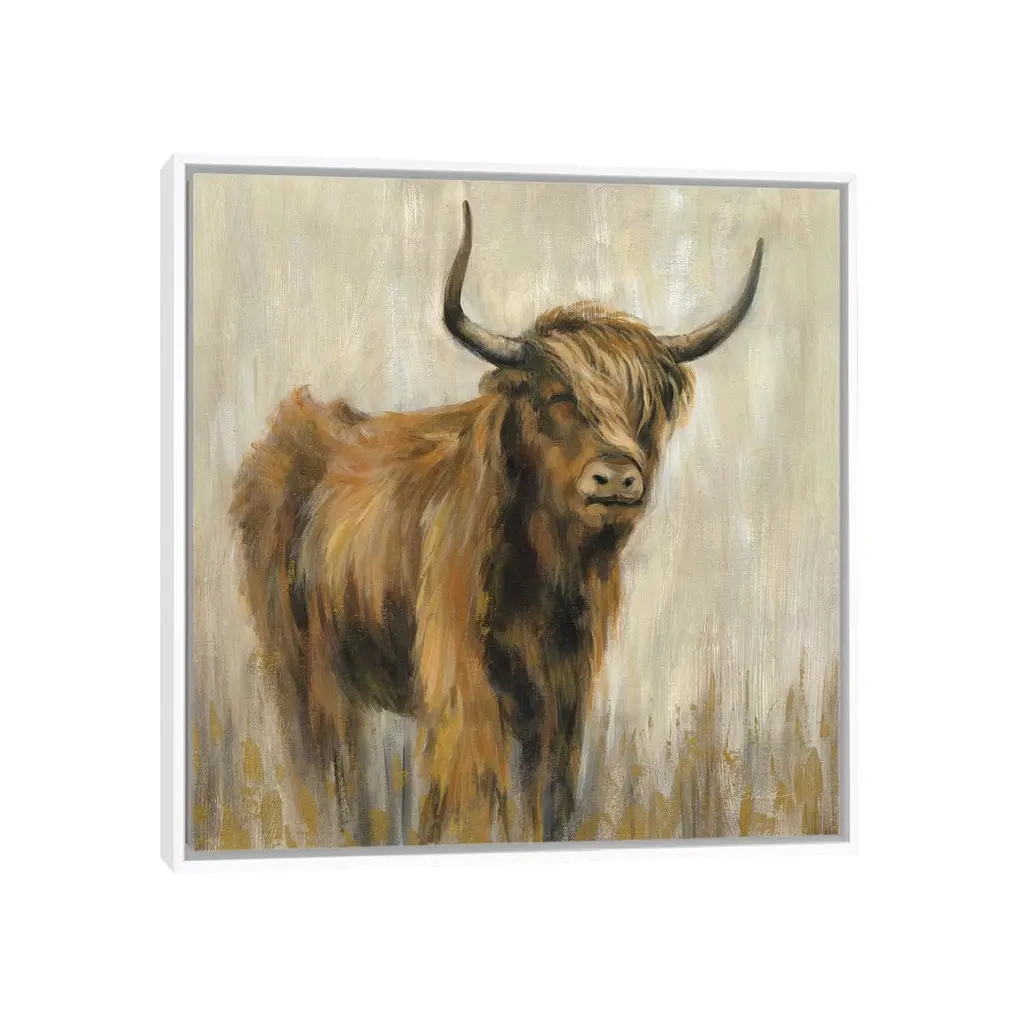 Icanvas "Highland Mountain Cow" By Silvia Vassileva Framed - Gold - 12x12