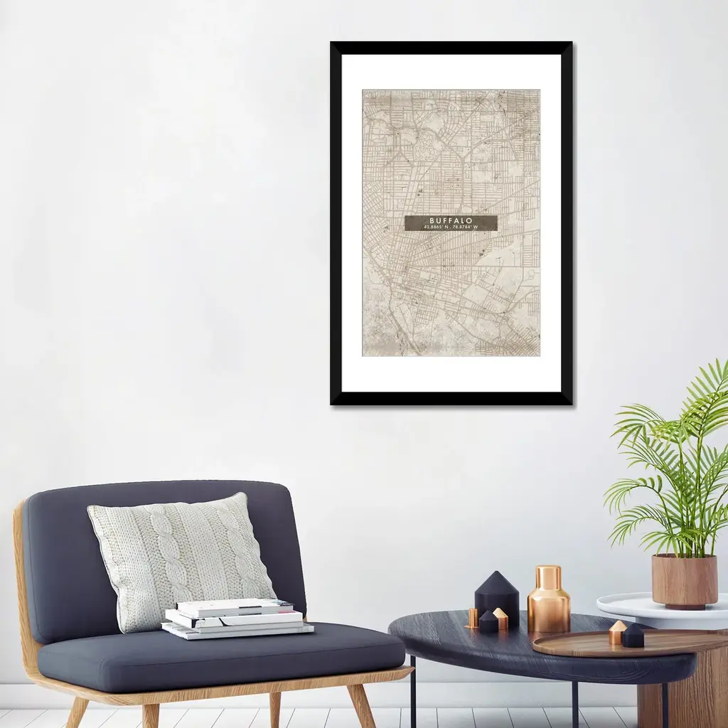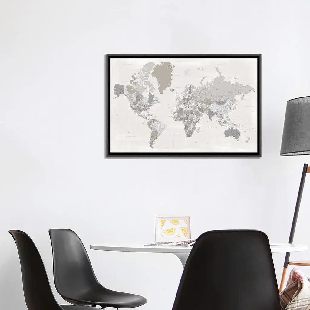 Icanvas "Highly Detailed World Map In Taupe, Donah" By Blursbyai Framed - Charcoal - 26x40