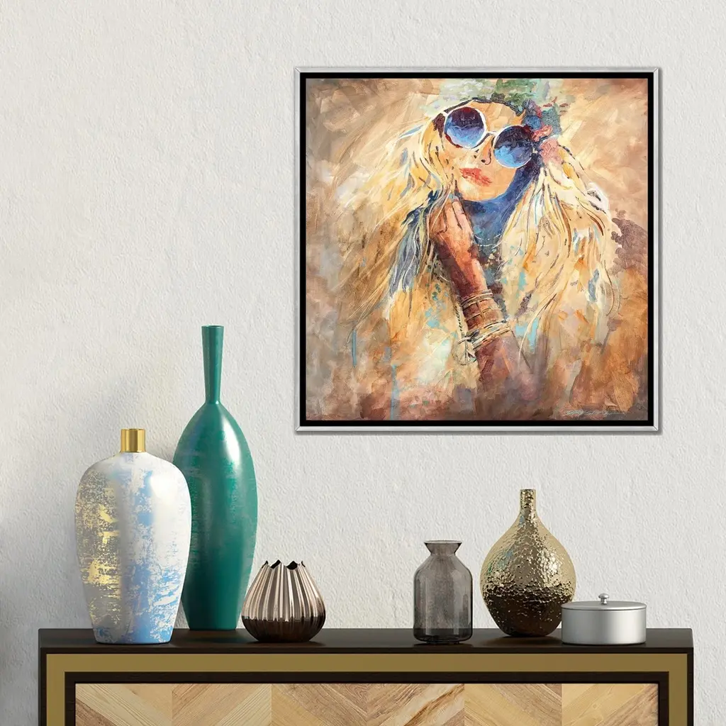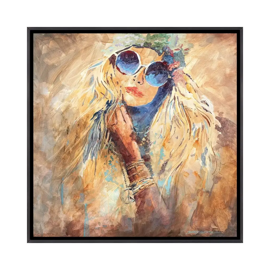 Icanvas "Hippie Girl" By Bill Drysdale Framed - 37x37 - Charcoal