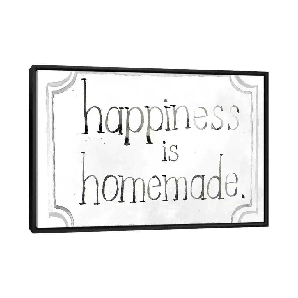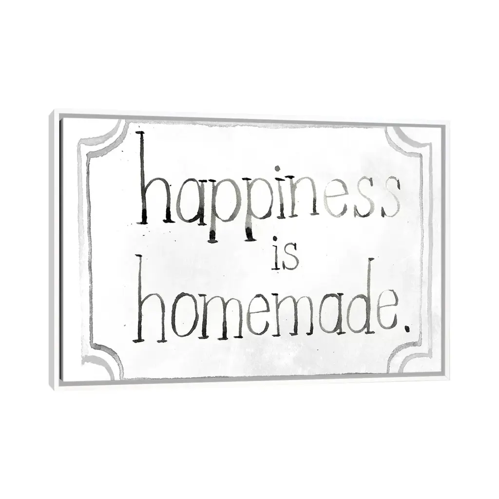 Elevate your space with the iCanvas "Homemade Happy I" by Jennifer Paxton Parker Framed artwork. Made with premium artist-grade canvas, this Giclee canvas artwork offers the texture and feel of a fine-art painting. Crafted in the USA, it features a Gallery Wrap style with the canvas professionally hand-stretched and stapled over pine-wood bars. The 2-inch thick hard wood frame adds an elegant touch, with a 3/8" space between the art and frame for a "floating" illusion. The fade-resistant archival inks ensure vibrant colors that last for decades, even in strong light. Embrace contemporary style and exceptional detail with this stunning piece.Features: