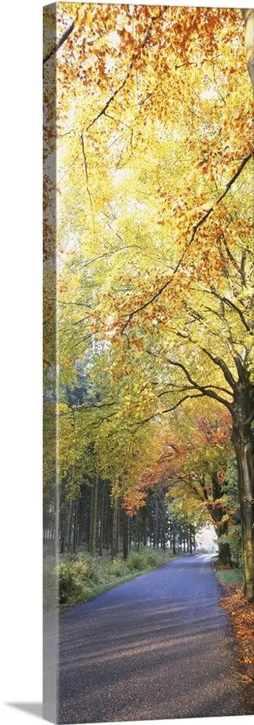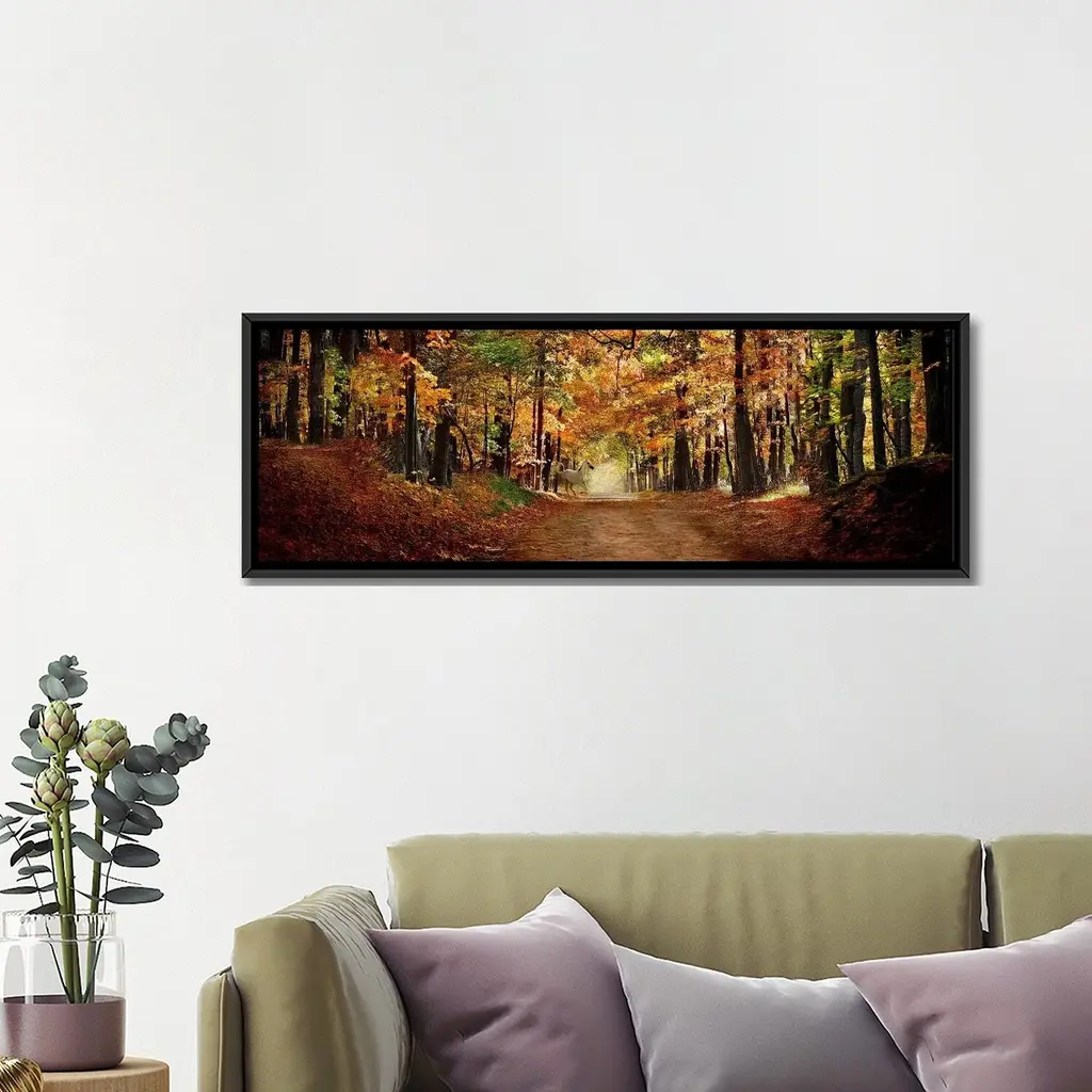Icanvas "Horse Running Across Road In Fall Colors" By Panoramic Images Framed Canvas Print - 16x48 - Black