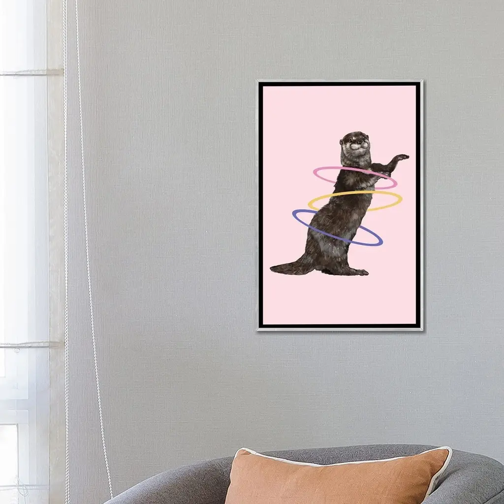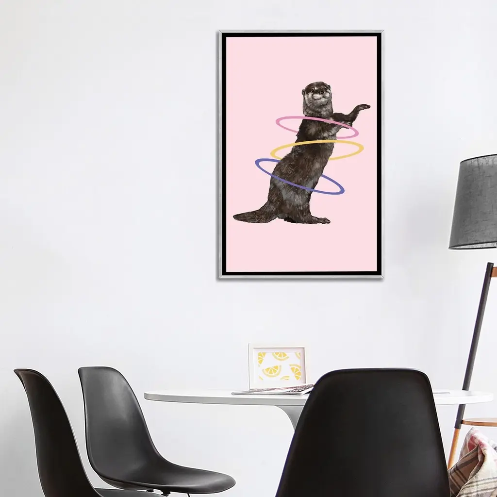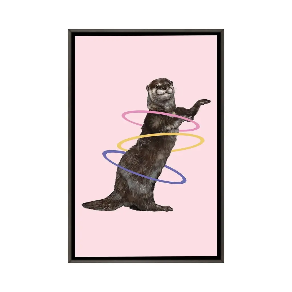 Icanvas "Hula Hooping Otter In Pink" By Big Nose Work Framed - Ebony - 26x18
