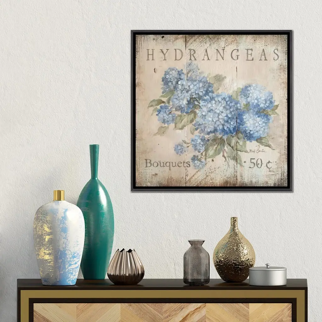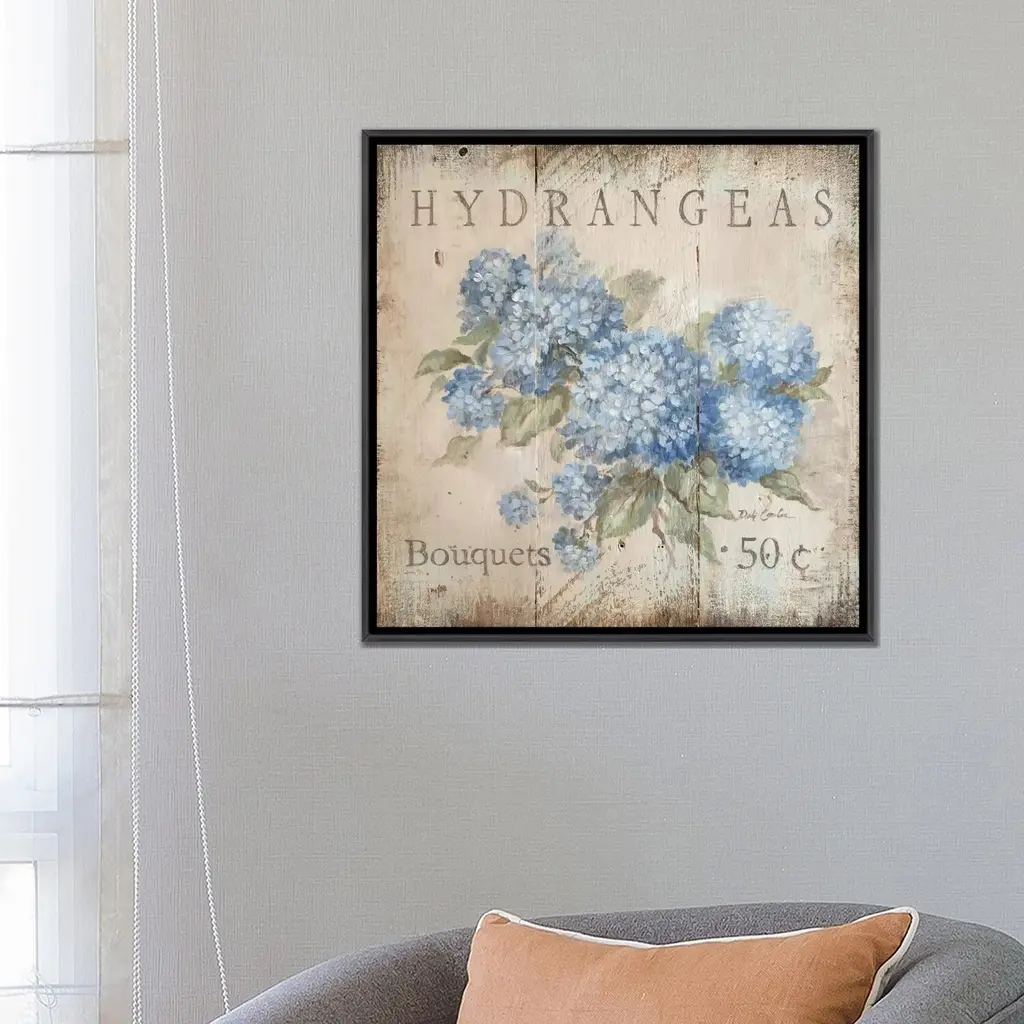 Icanvas "Hydrangeas Bouquets (50 Cents)" By Debi Coules Framed - 18x18 - Ebony