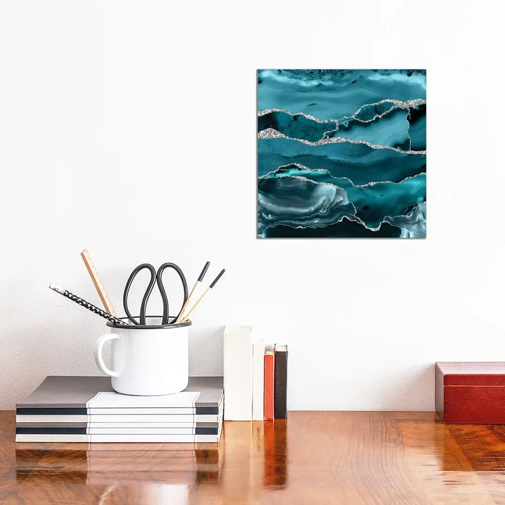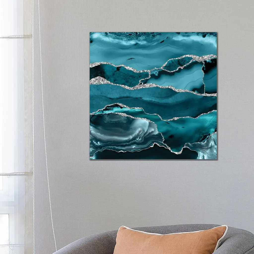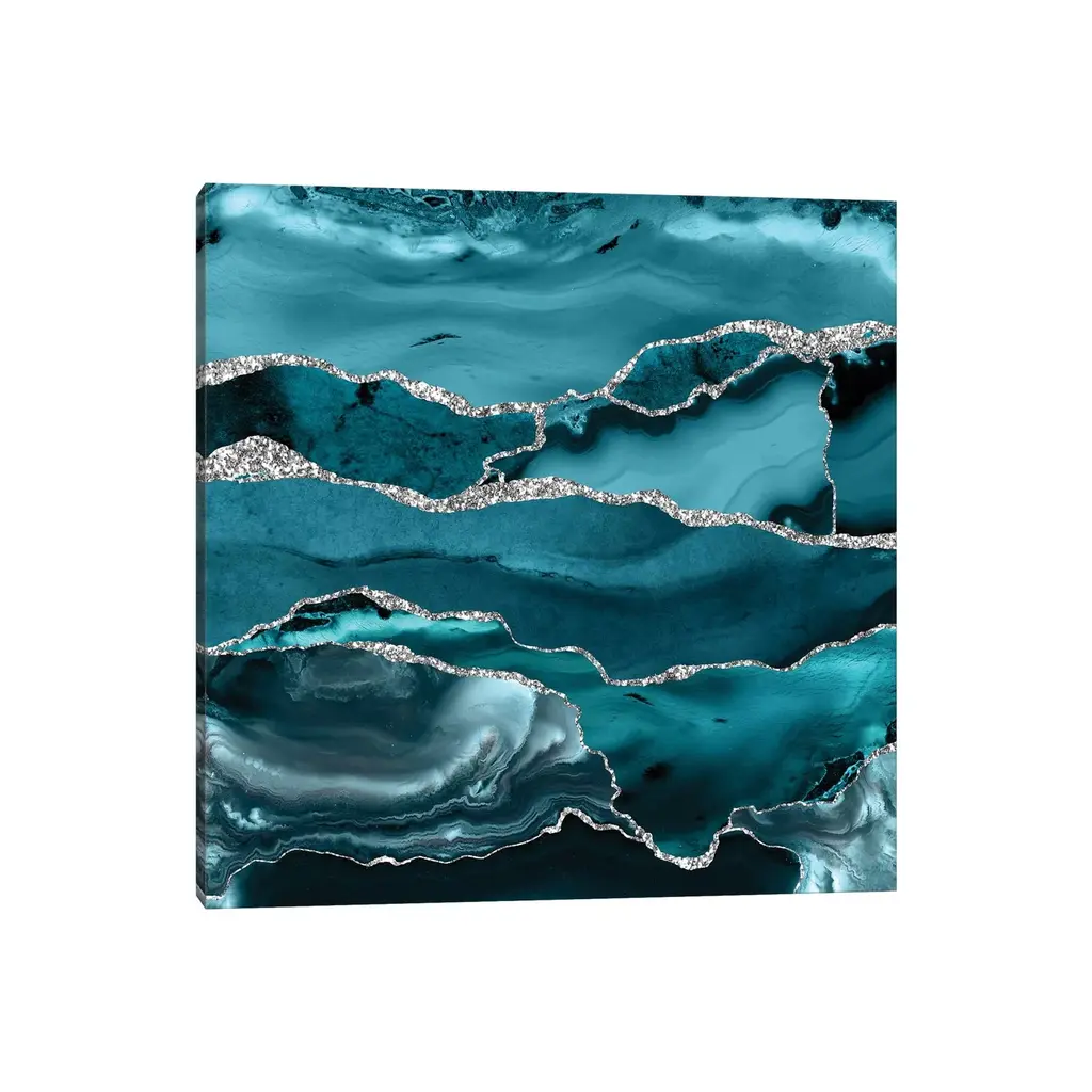 Icanvas "Ice Blue Marble" By Utart Canvas Print - 12x12x0.75