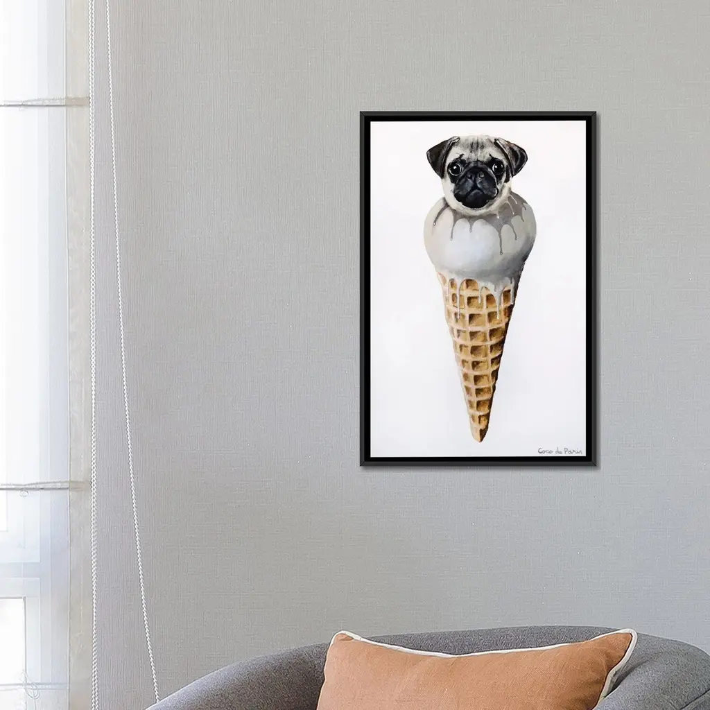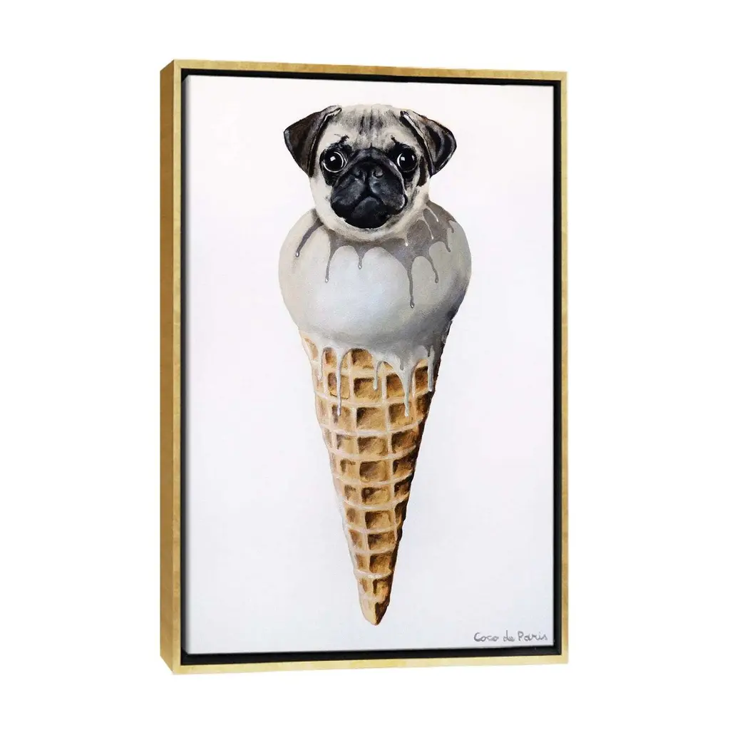 Icanvas "Ice Cream Pug" By Coco De Paris Framed - Black - 26x18