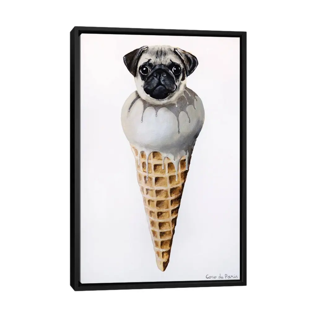 Icanvas "Ice Cream Pug" By Coco De Paris Framed - White - 40x26
