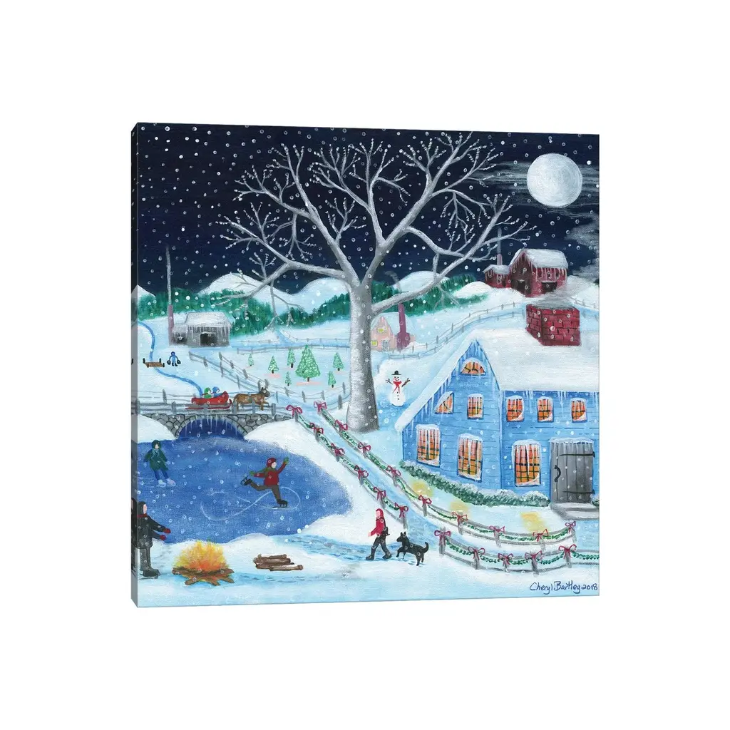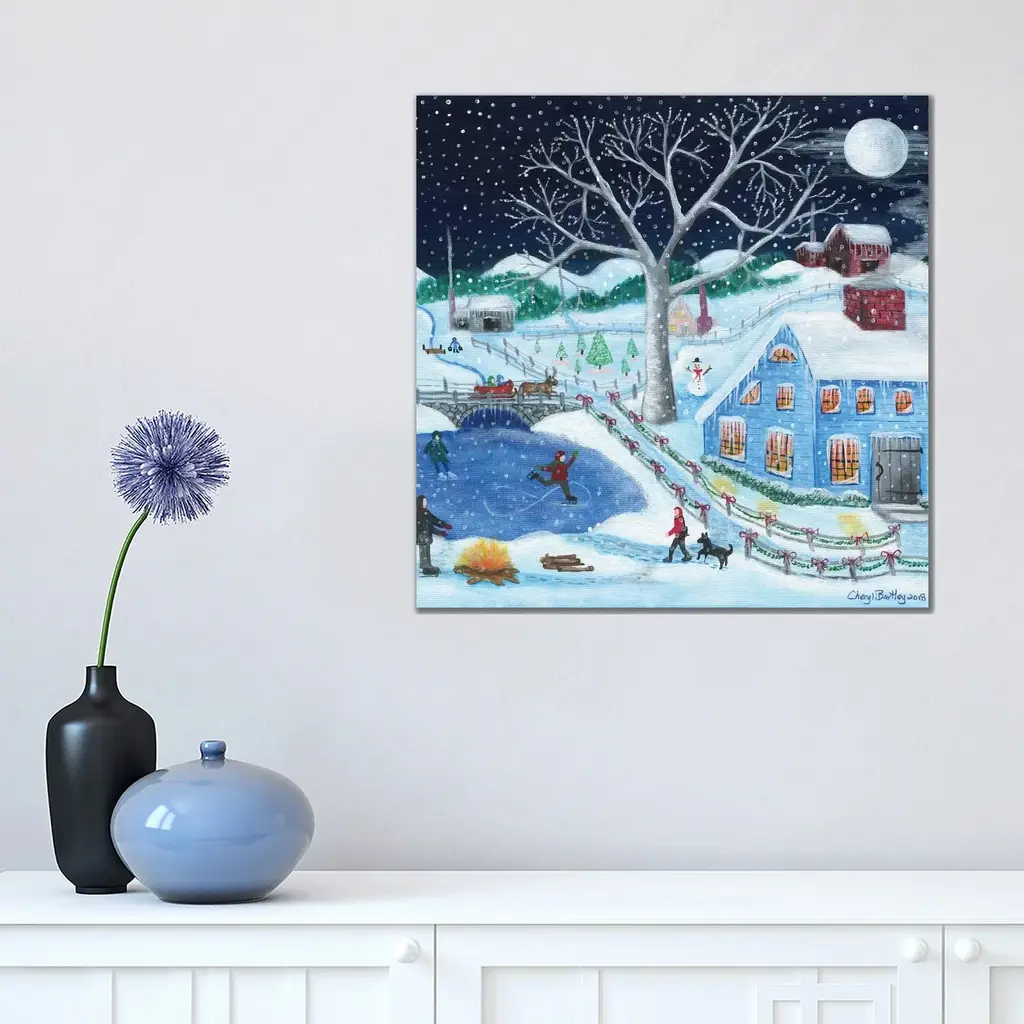Icanvas "Ice Skating By Old Farm" By Cheryl Bartley Canvas Print - 18x18x1.5