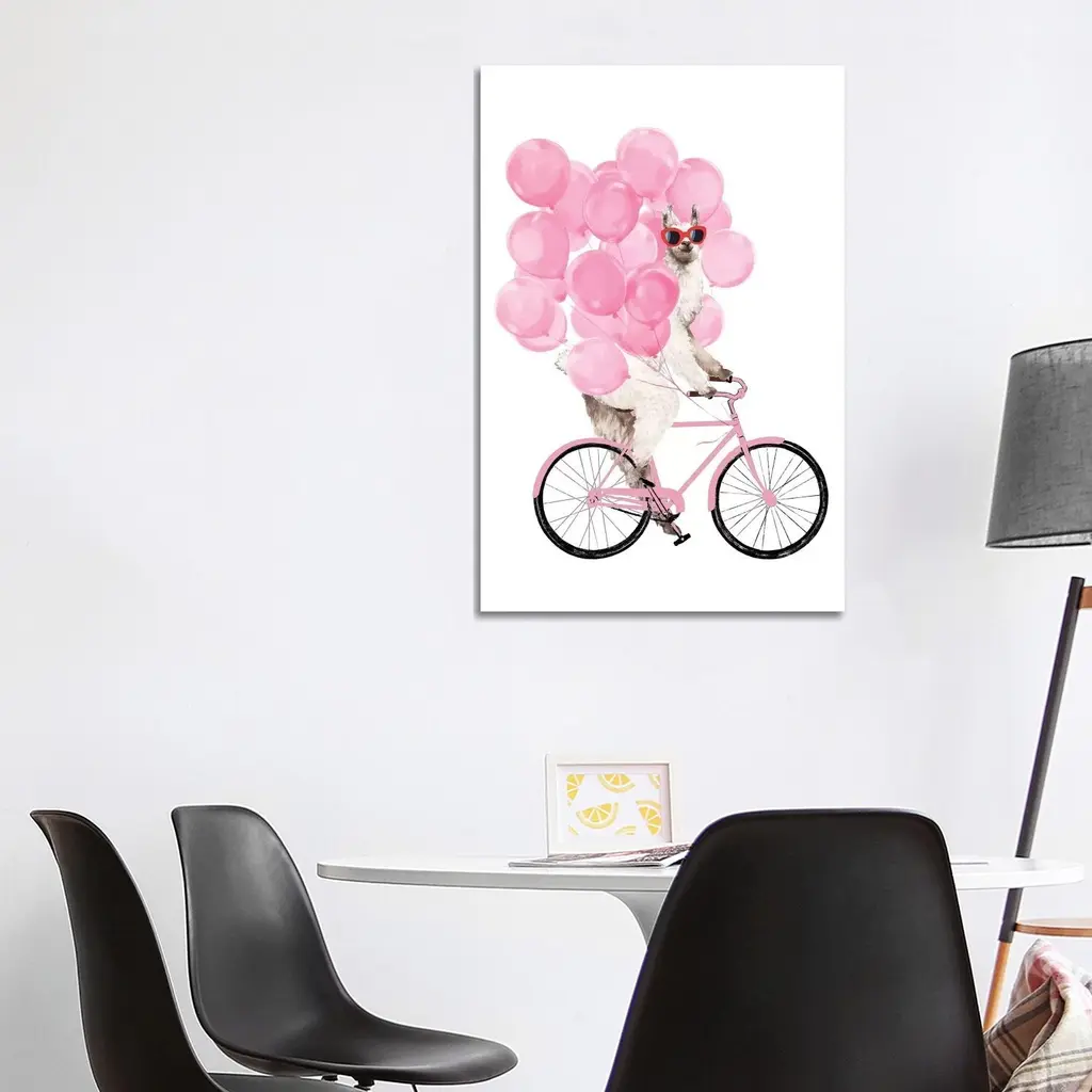Icanvas "Iding Llama With Pink Balloons" By Big Nose Work Canvas Print - 12x8x0.75