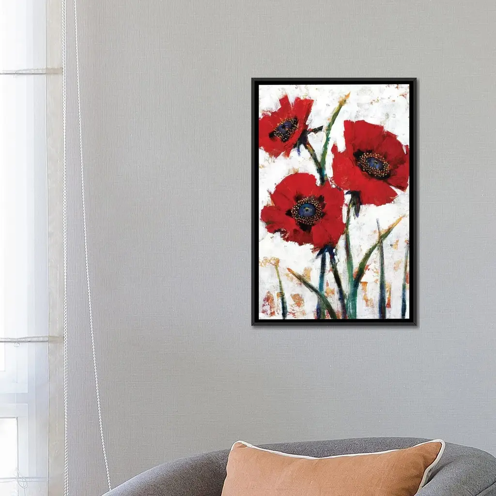 Icanvas "Idyllic Field Of Poppies With Sun Panorama" By Melanie Viola Framed Canvas Print - 20x60 - Black