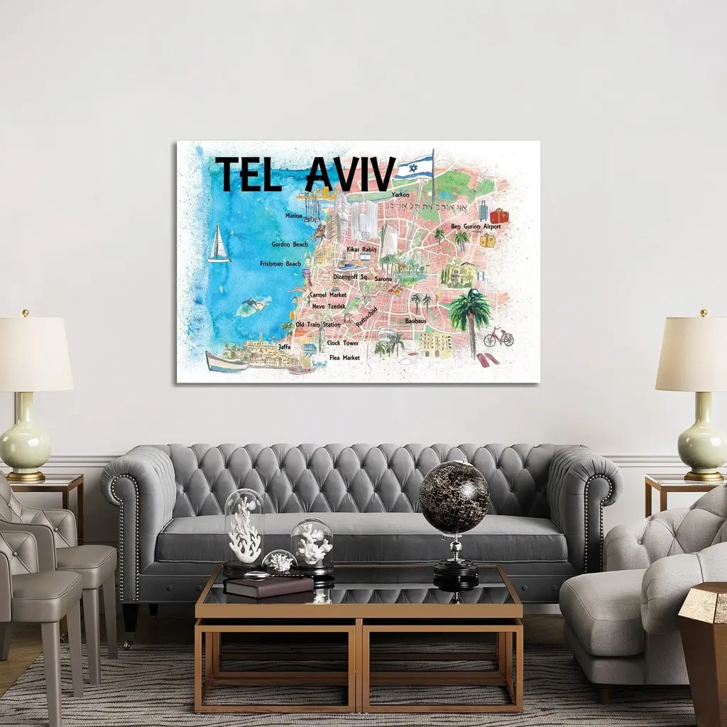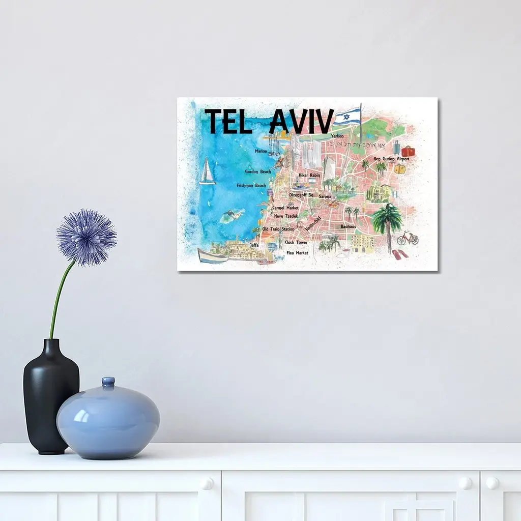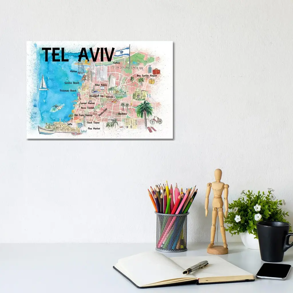 Icanvas "Illustrated Landmark Map, Tel Aviv, Israel" By Markus & Martina Bleichner Canvas Print - 26x40x1.5