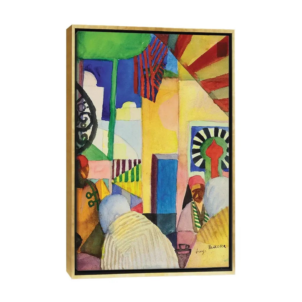 Icanvas "In The Bazaar, 1914 " By August Macke Framed Canvas Print - Gold - 26x18