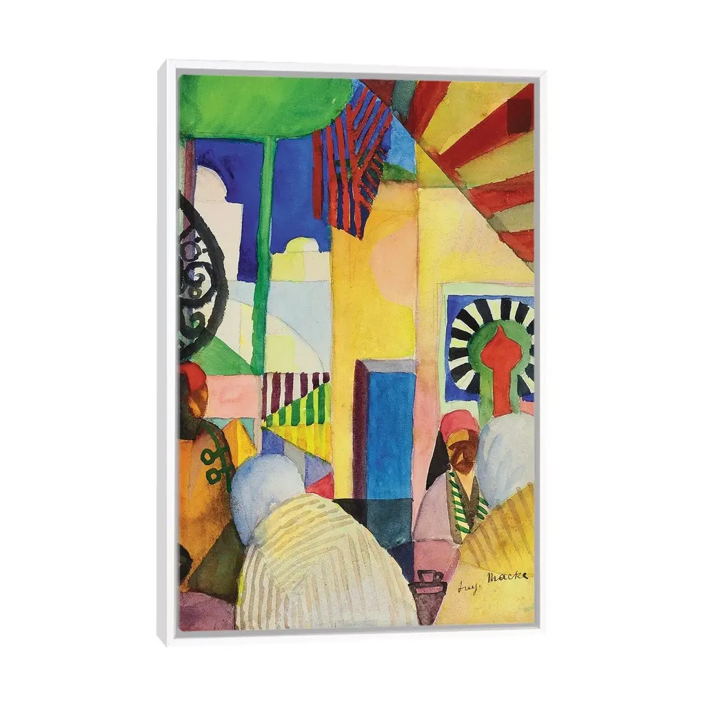 Icanvas "In The Bazaar, 1914 " By August Macke Framed Canvas Print - White - 40x26