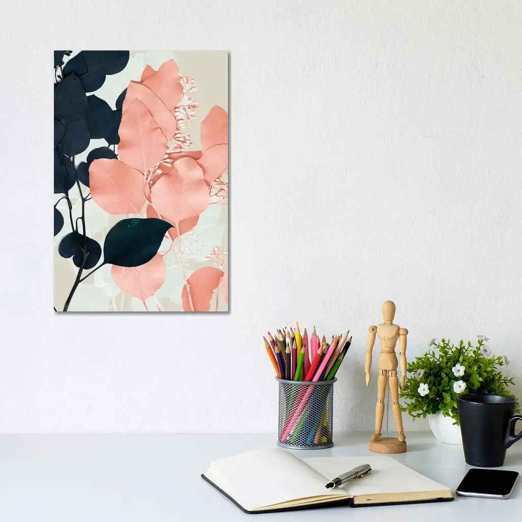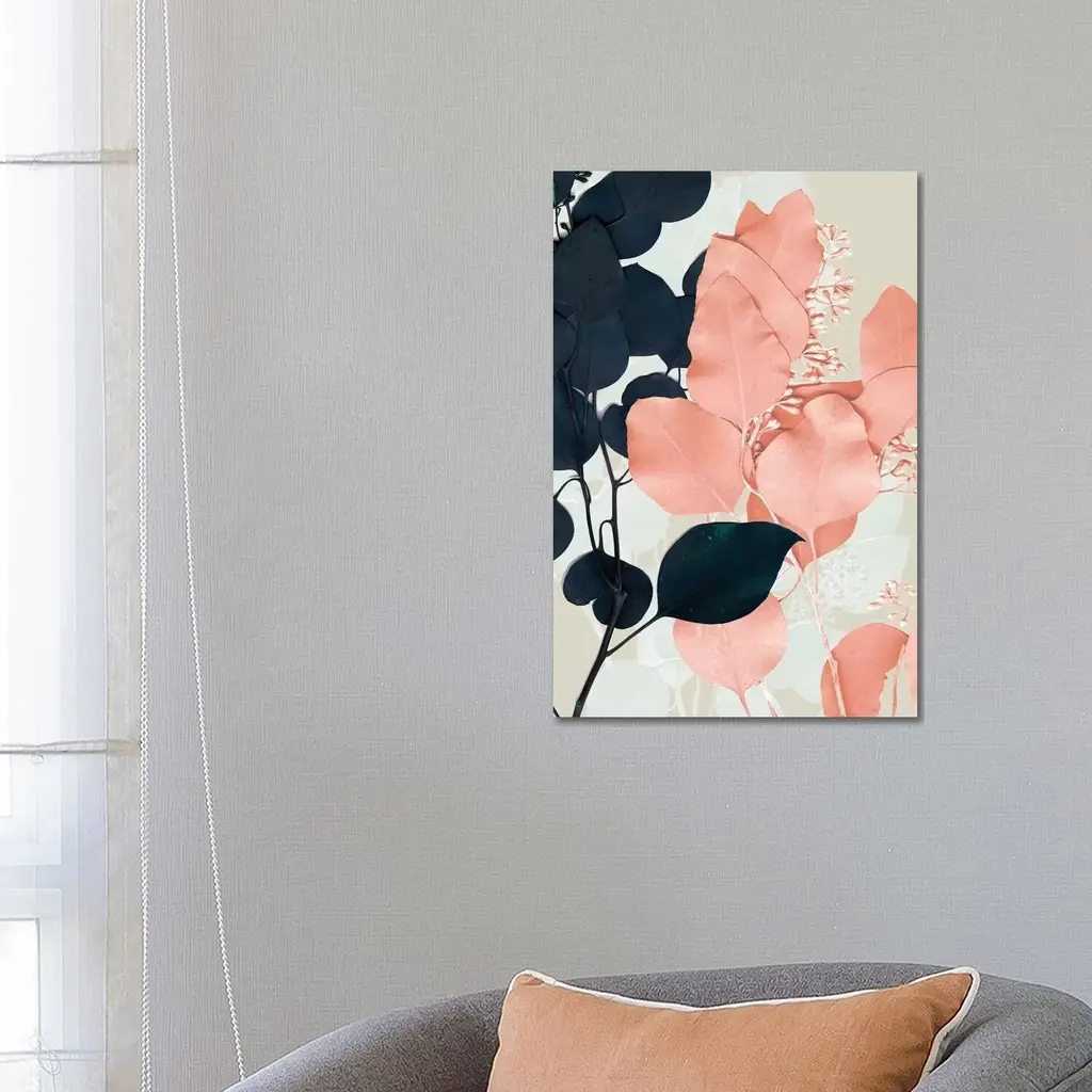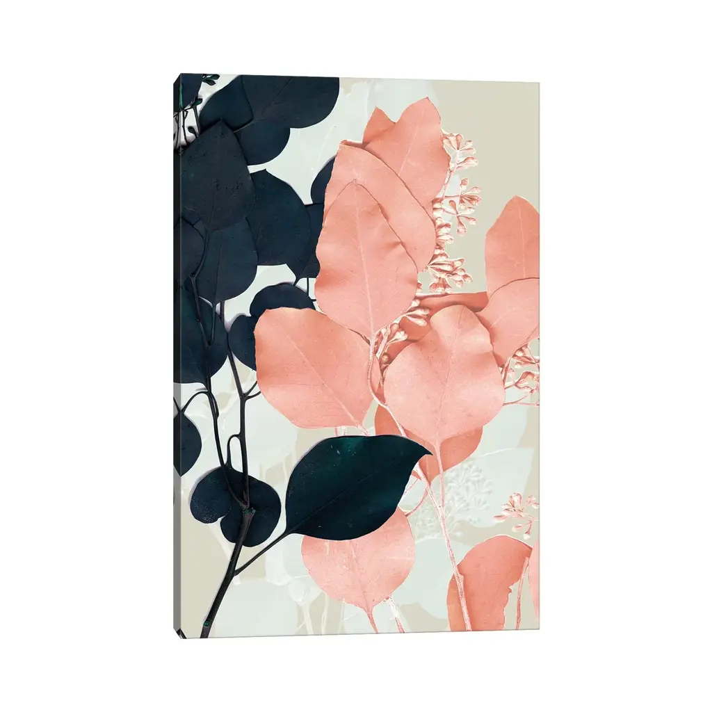 Icanvas "Indigo & Blush Leaves Ii" By Jennifer Goldberger Canvas Print - 18x12x1.5