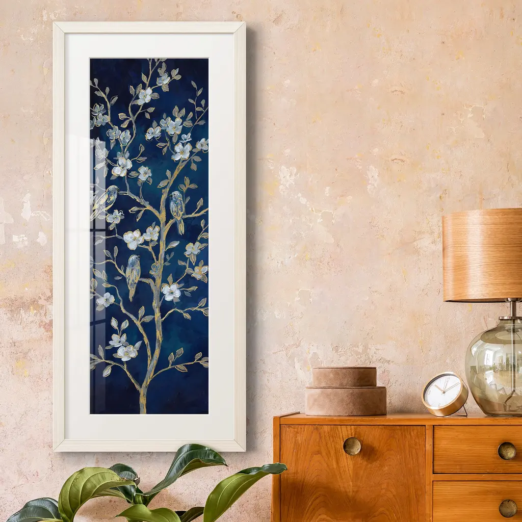 Icanvas "Indigo Spring I" By Nan Framed Canvas Print - 36x12 - White