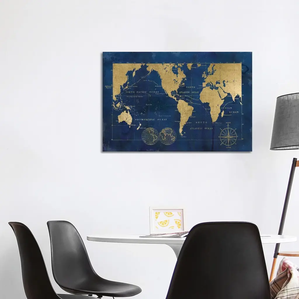 Icanvas "Indigo World Map" By Carol Robinson Canvas Print - 12x18x1.5