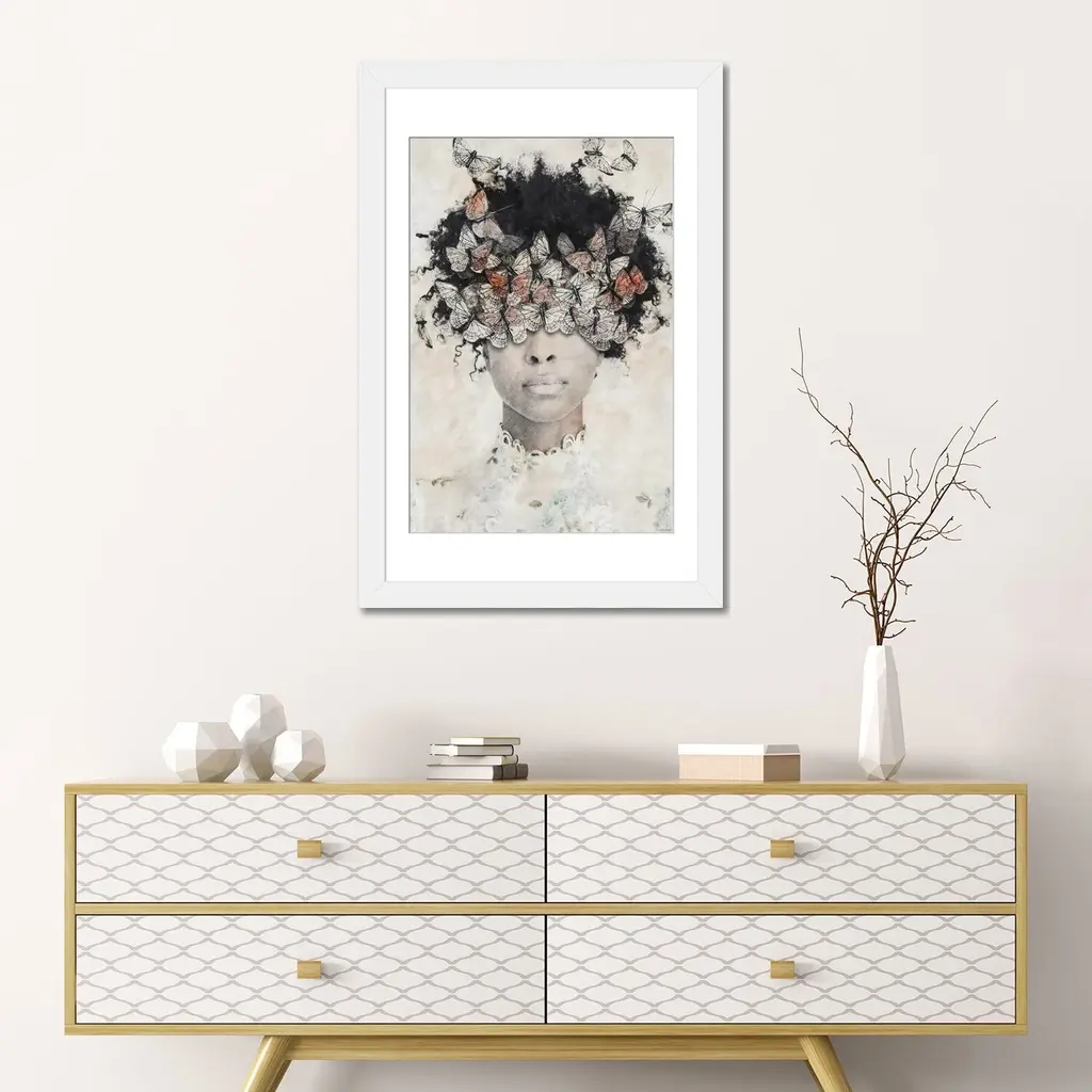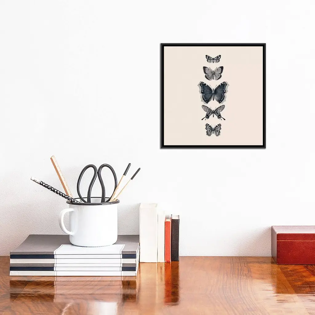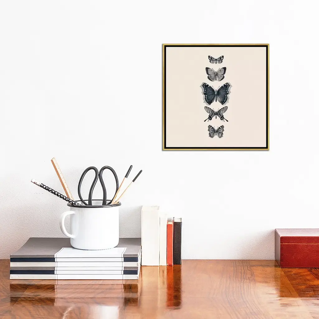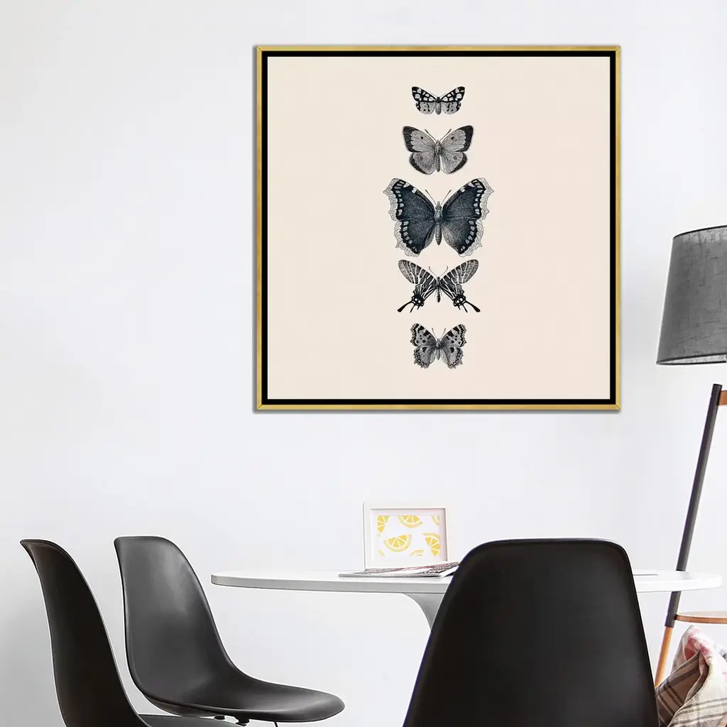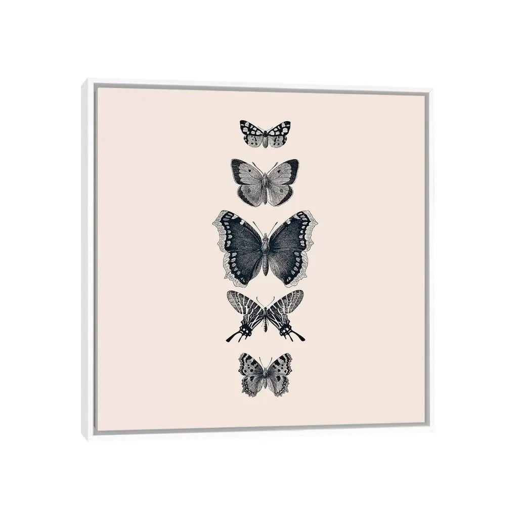 Icanvas "Inked Butterflies Beige Square" By Monika Strigel Framed Canvas Print - Black - 12x12