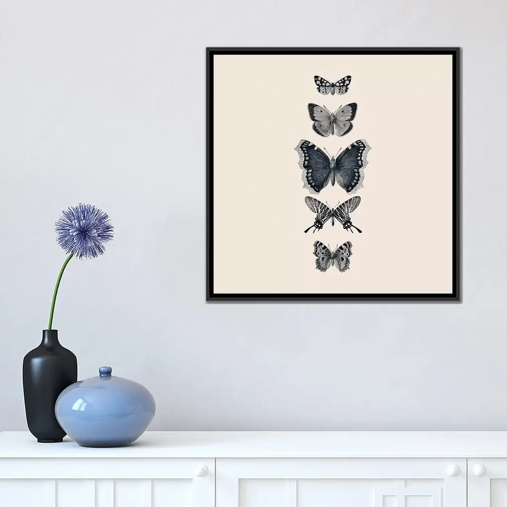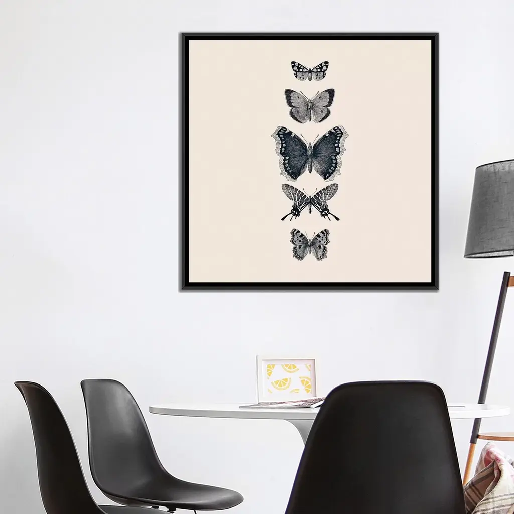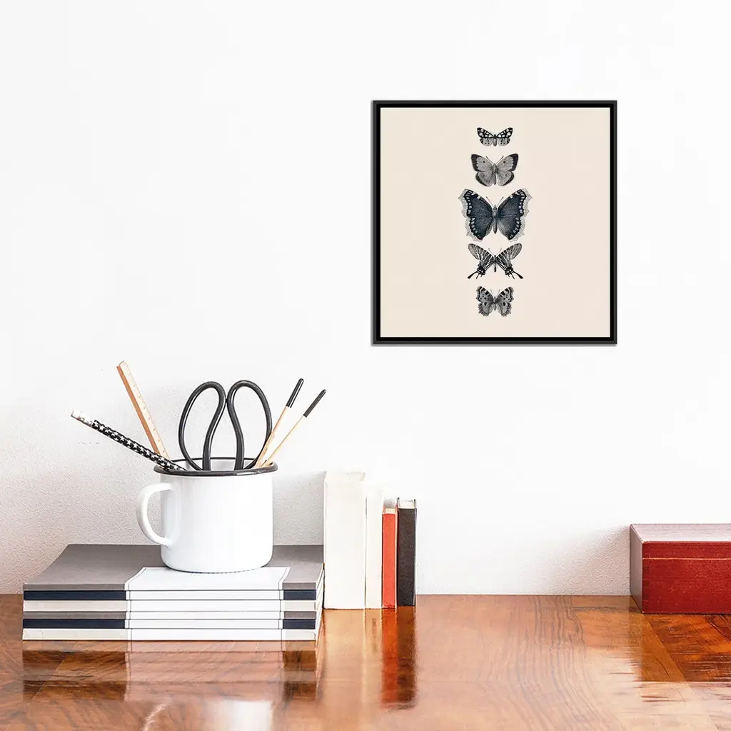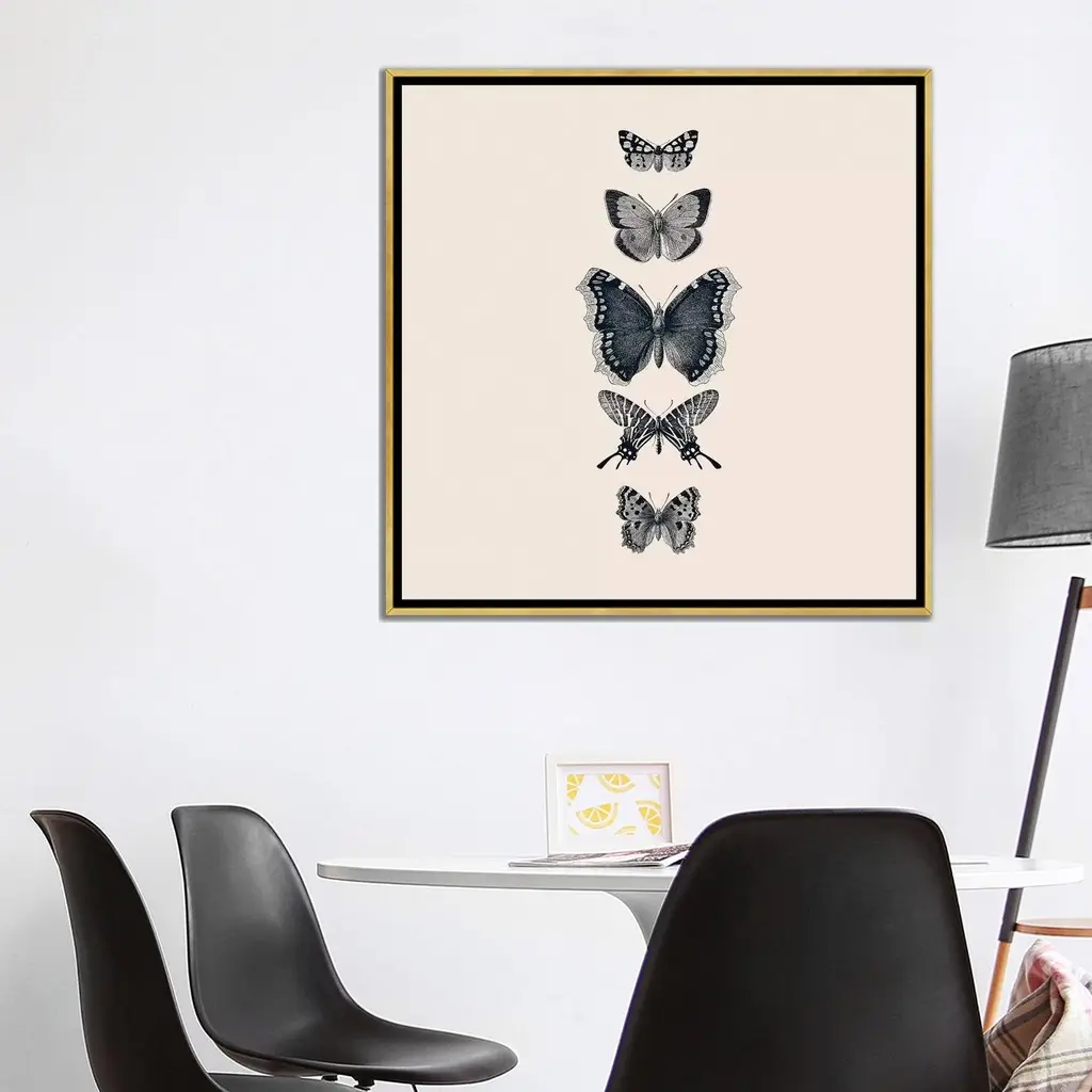 Icanvas "Inked Butterflies Beige Square" By Monika Strigel Framed Canvas Print - Gold - 12x12