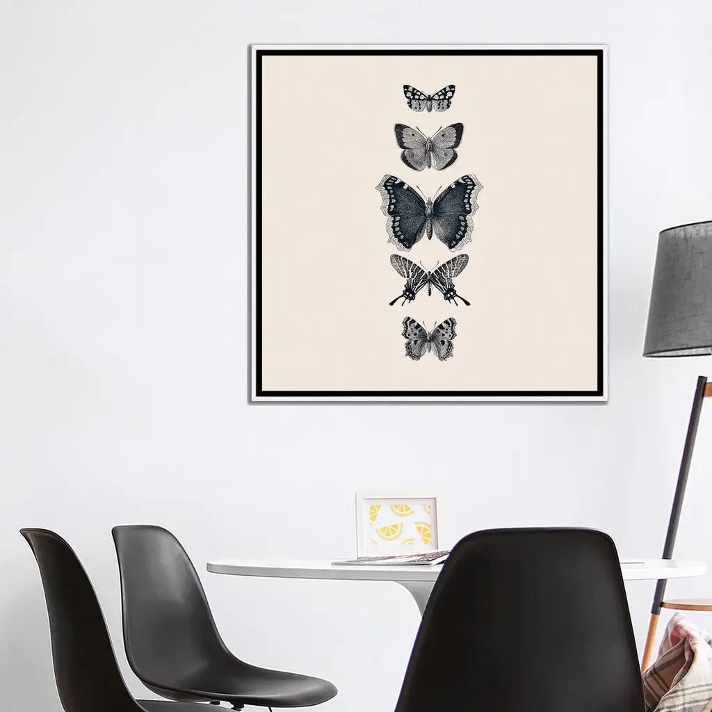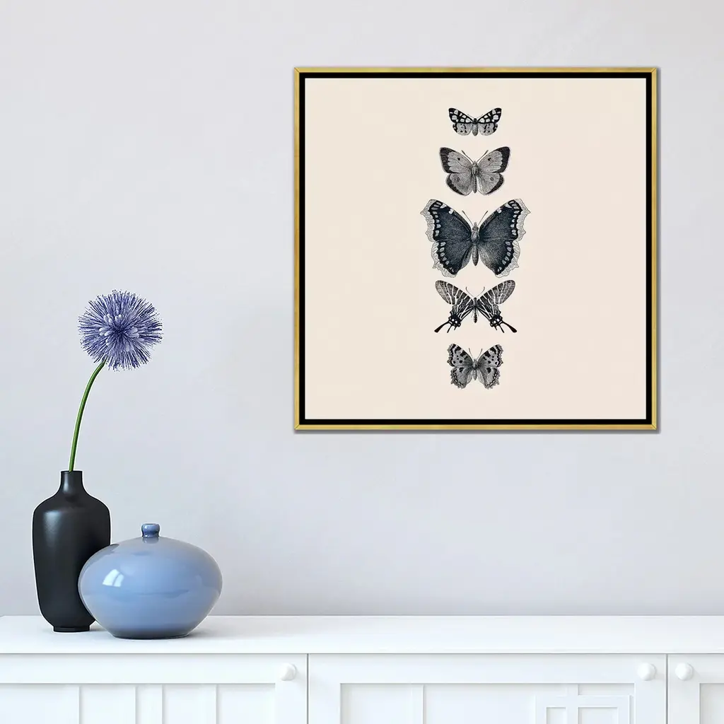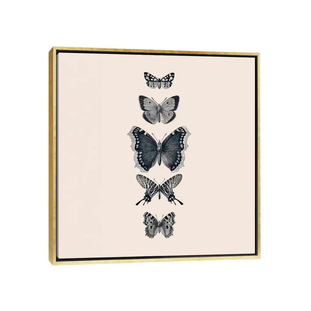 Icanvas "Inked Butterflies Beige Square" By Monika Strigel Framed Canvas Print - Gold - 26x26