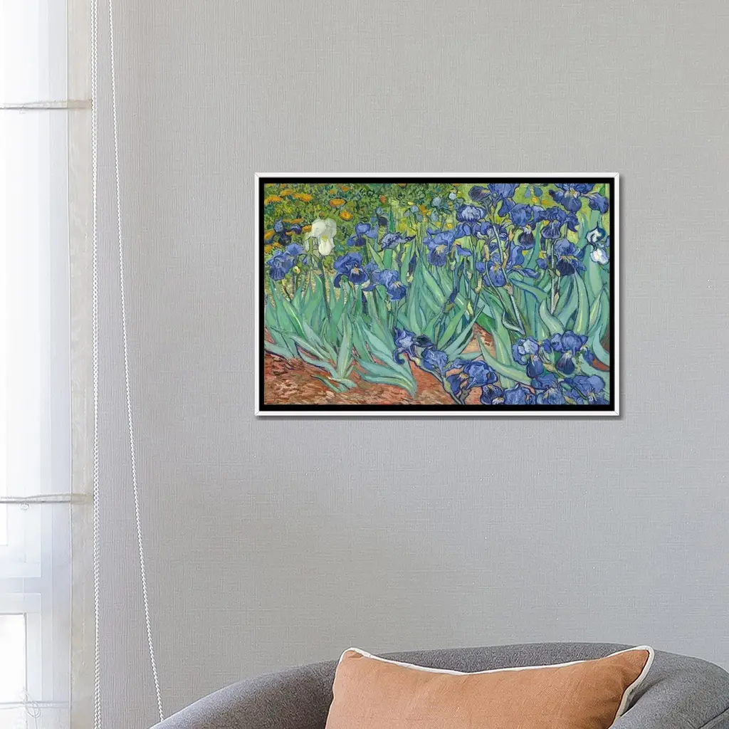 Icanvas "Irises, 1889 " By Vincent Van Gogh Framed Canvas Print - Gold - 18x26