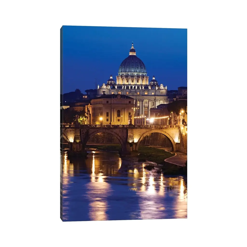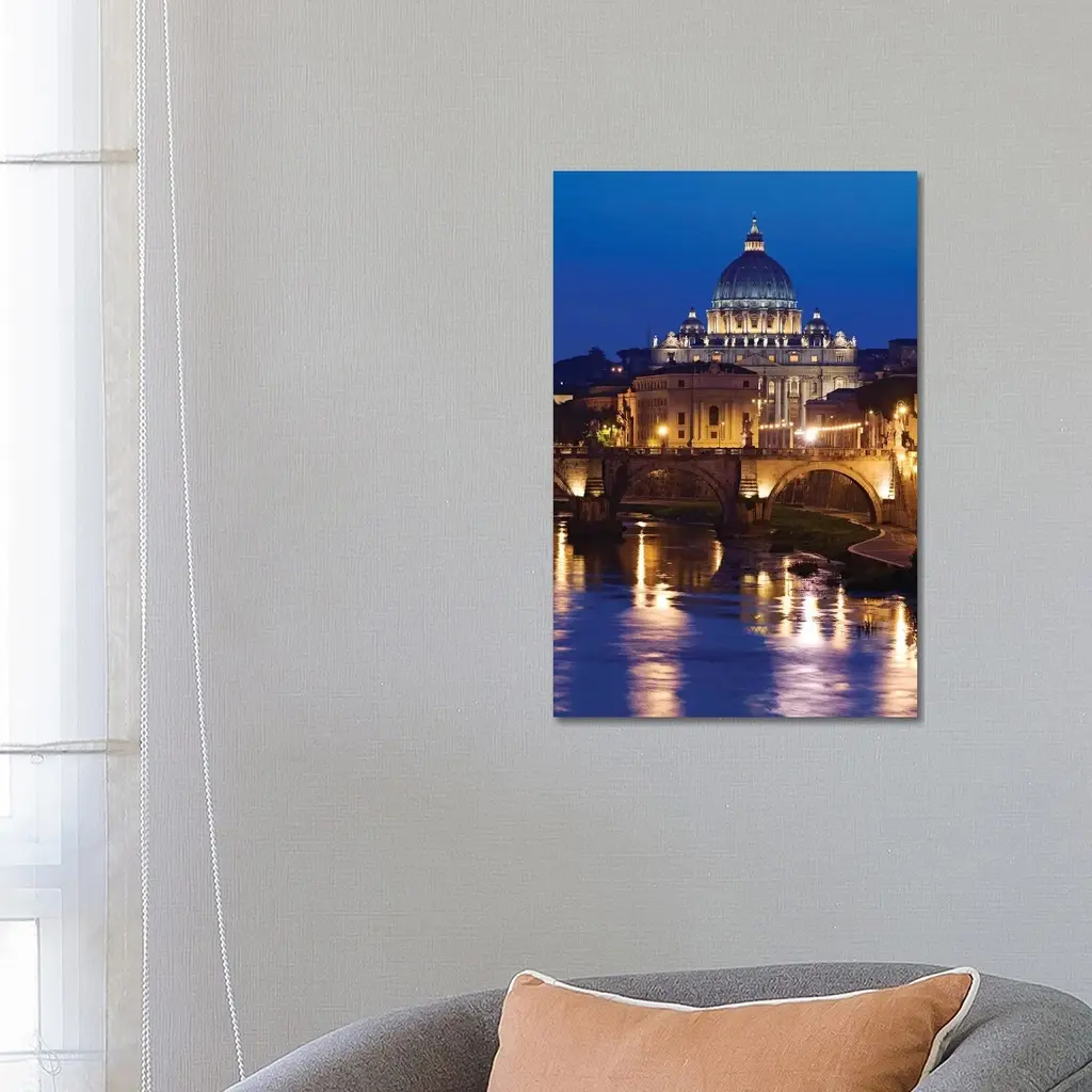 Icanvas "Italy, Rome, St. Peters Basilica, Tiber River Night Scene." By Jaynes Gallery Canvas Print - 40x26x1.5