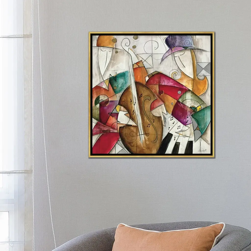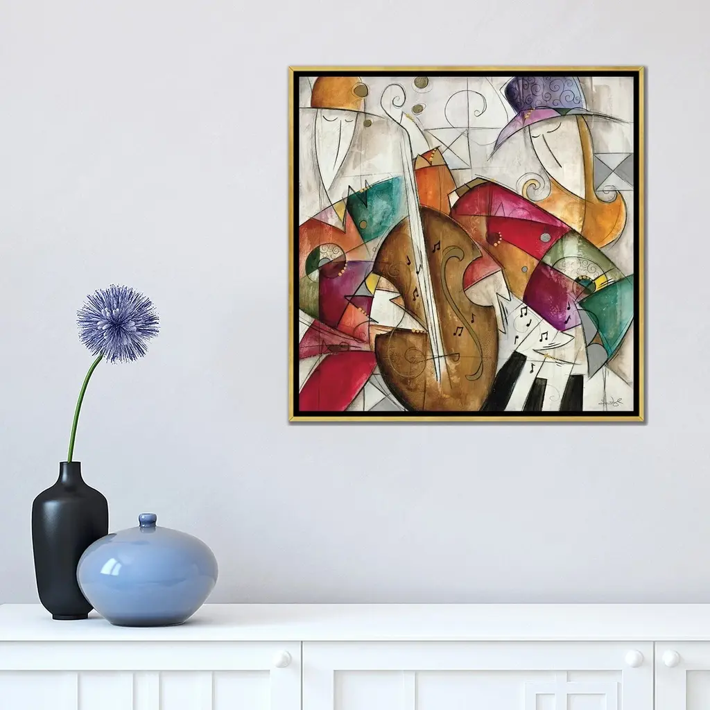 Icanvas "Jam Session Ii" By Eric Waugh Framed Canvas Print - Gold - 12x12