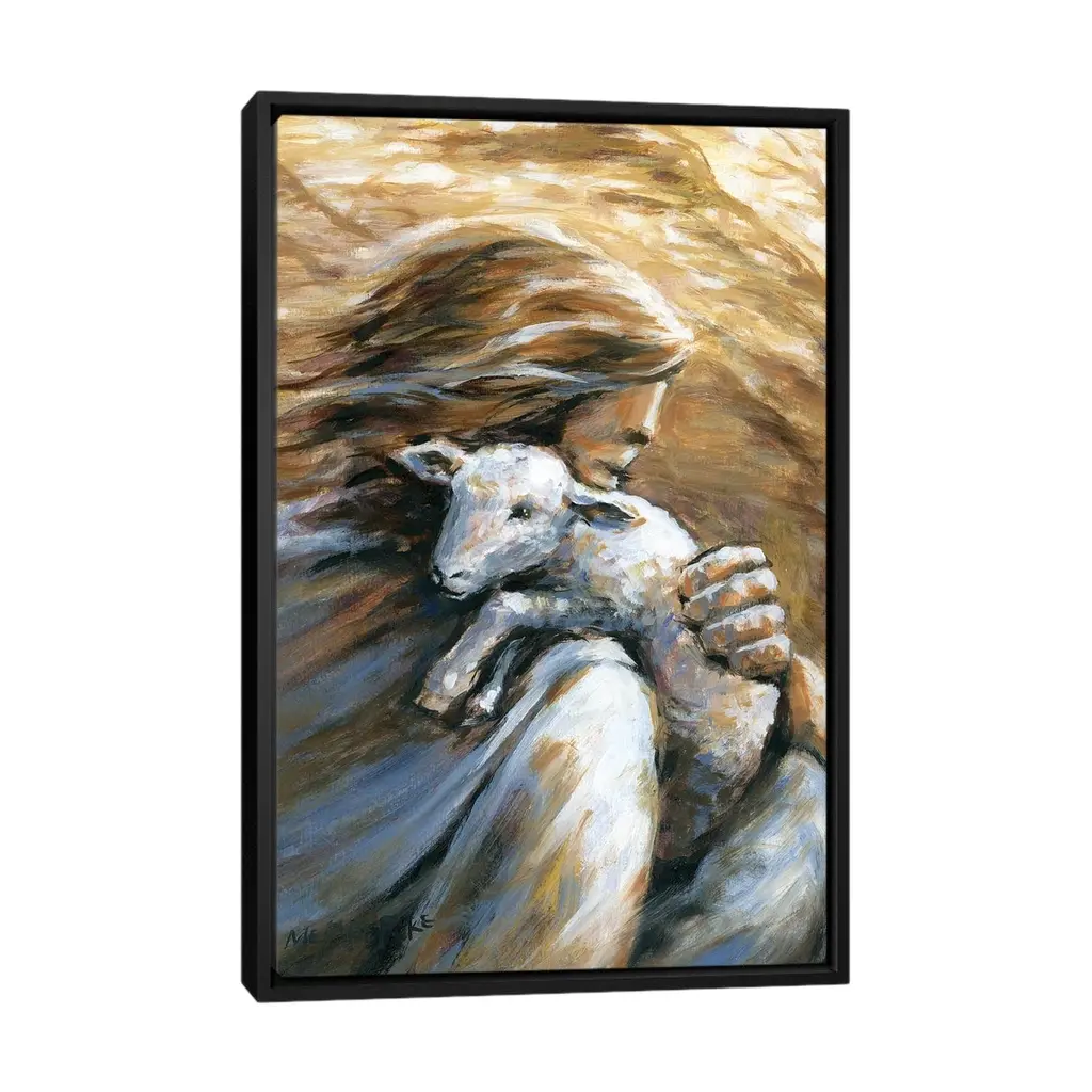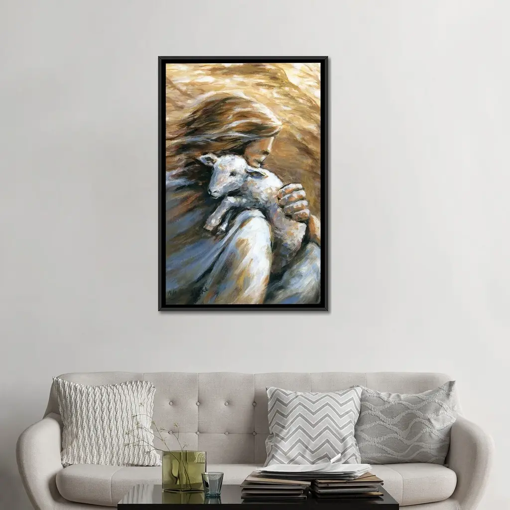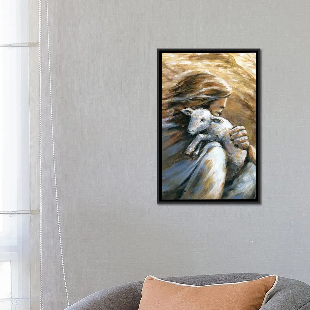 Icanvas "Jesus Carrying Lost Sheep Home" By Melani Pyke Framed Canvas Print - Black - 26x18