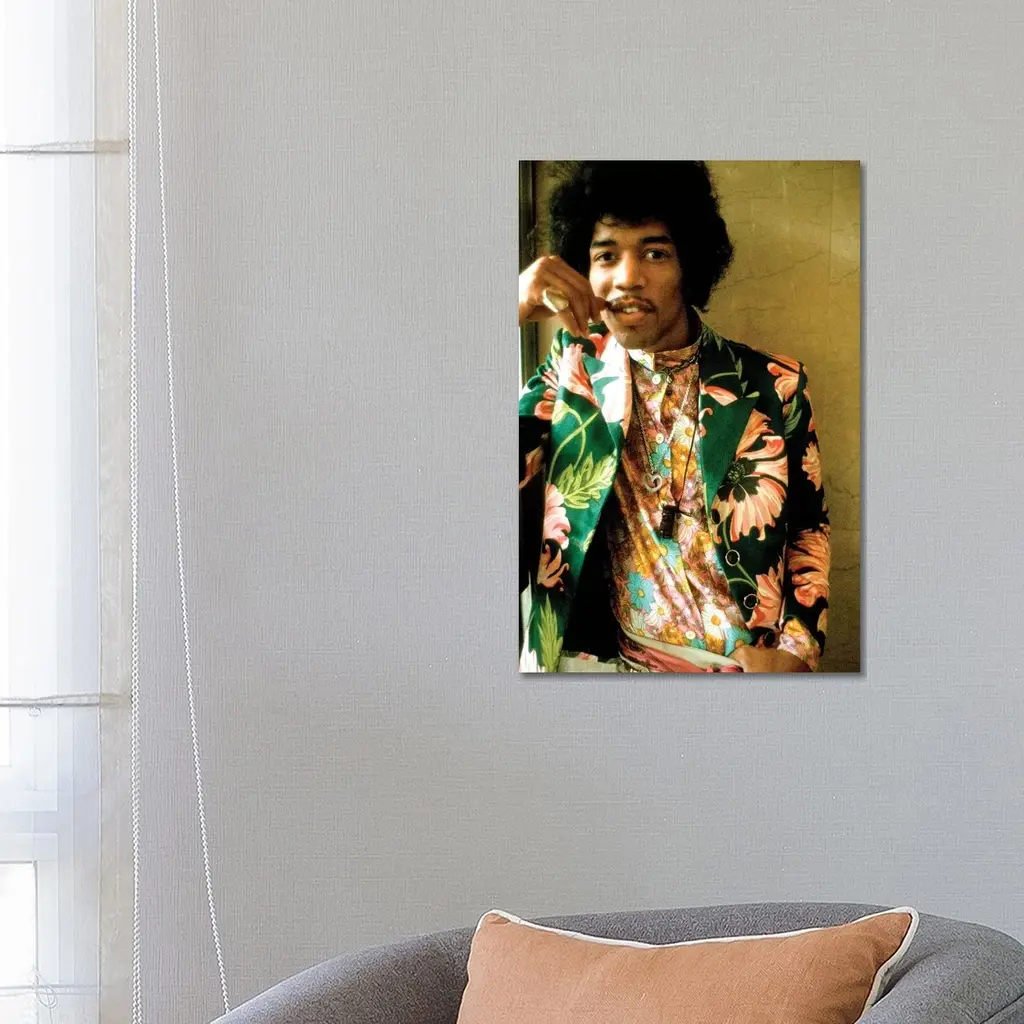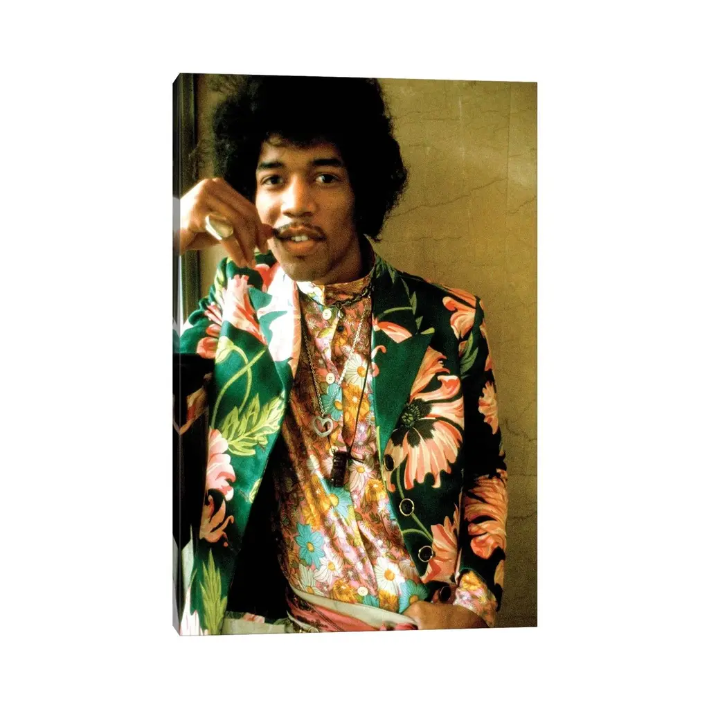Icanvas "Jimi Hendrix Colored Floral Jacket I" By Radio Days Canvas Print - 12x8x0.75