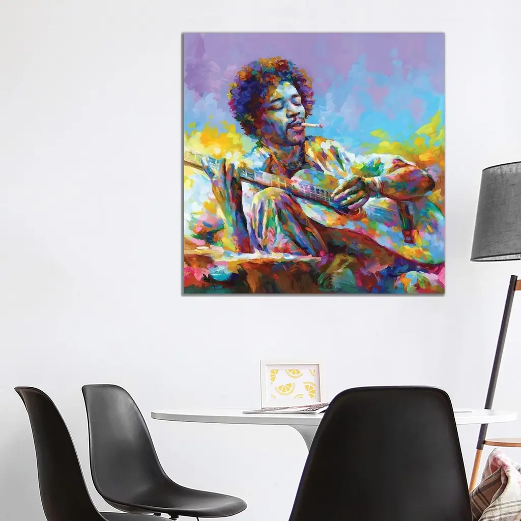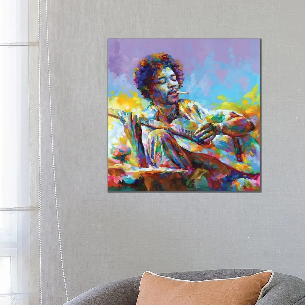 Icanvas "Jimi Hendrix Ii" By Leon Devenice Canvas Print - 12x12x0.75