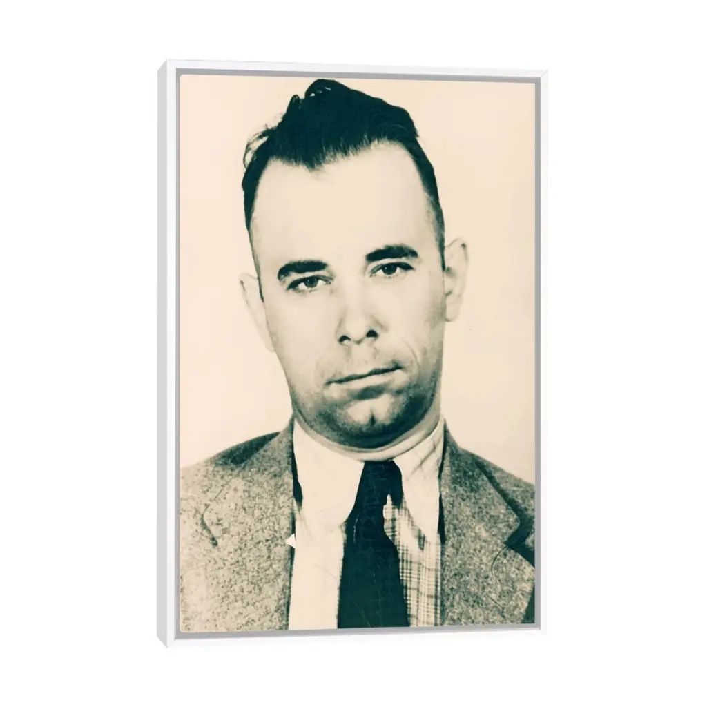Icanvas "John Dillinger - Gangster Mugshot" By Unknown Artist Framed Canvas Print - White - 40x26
