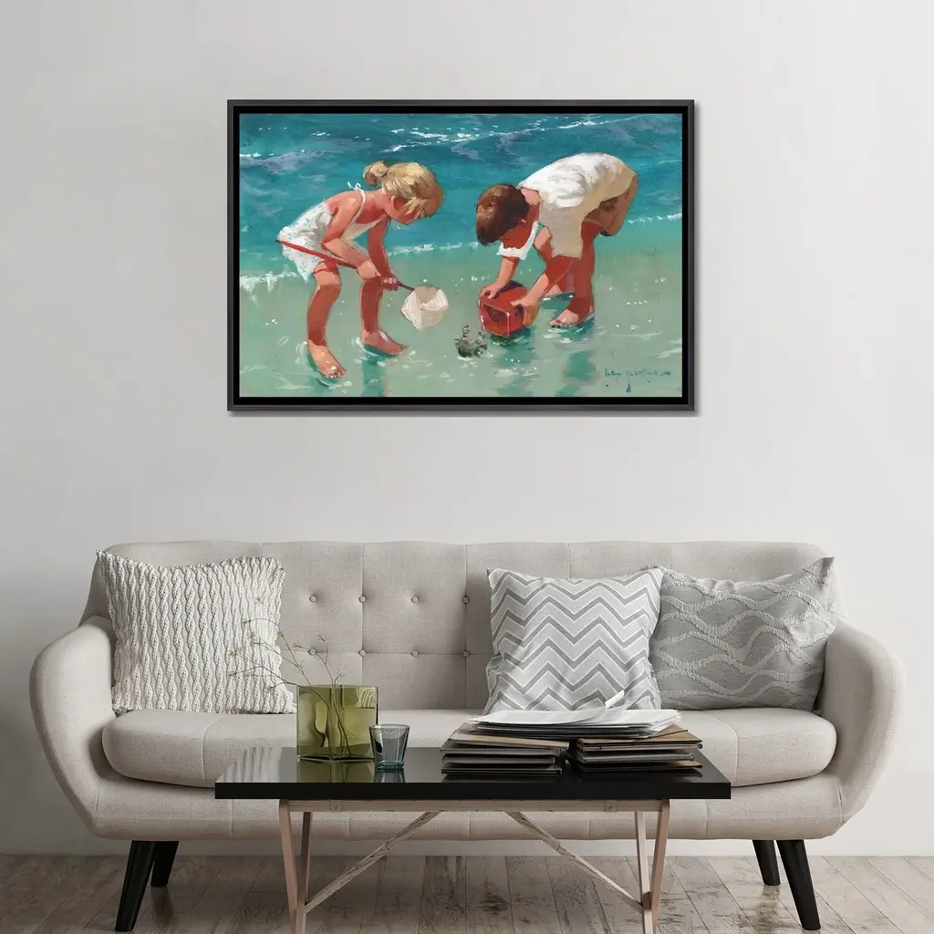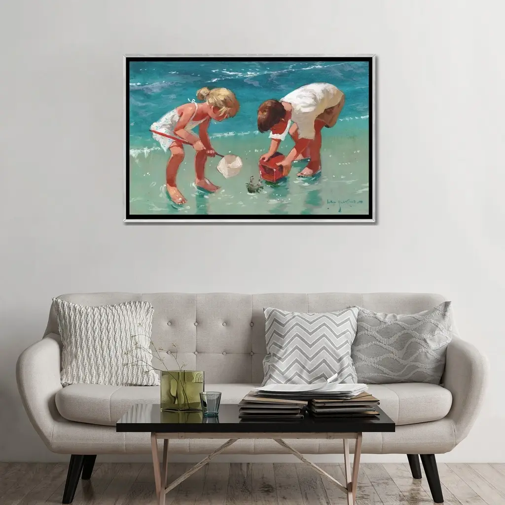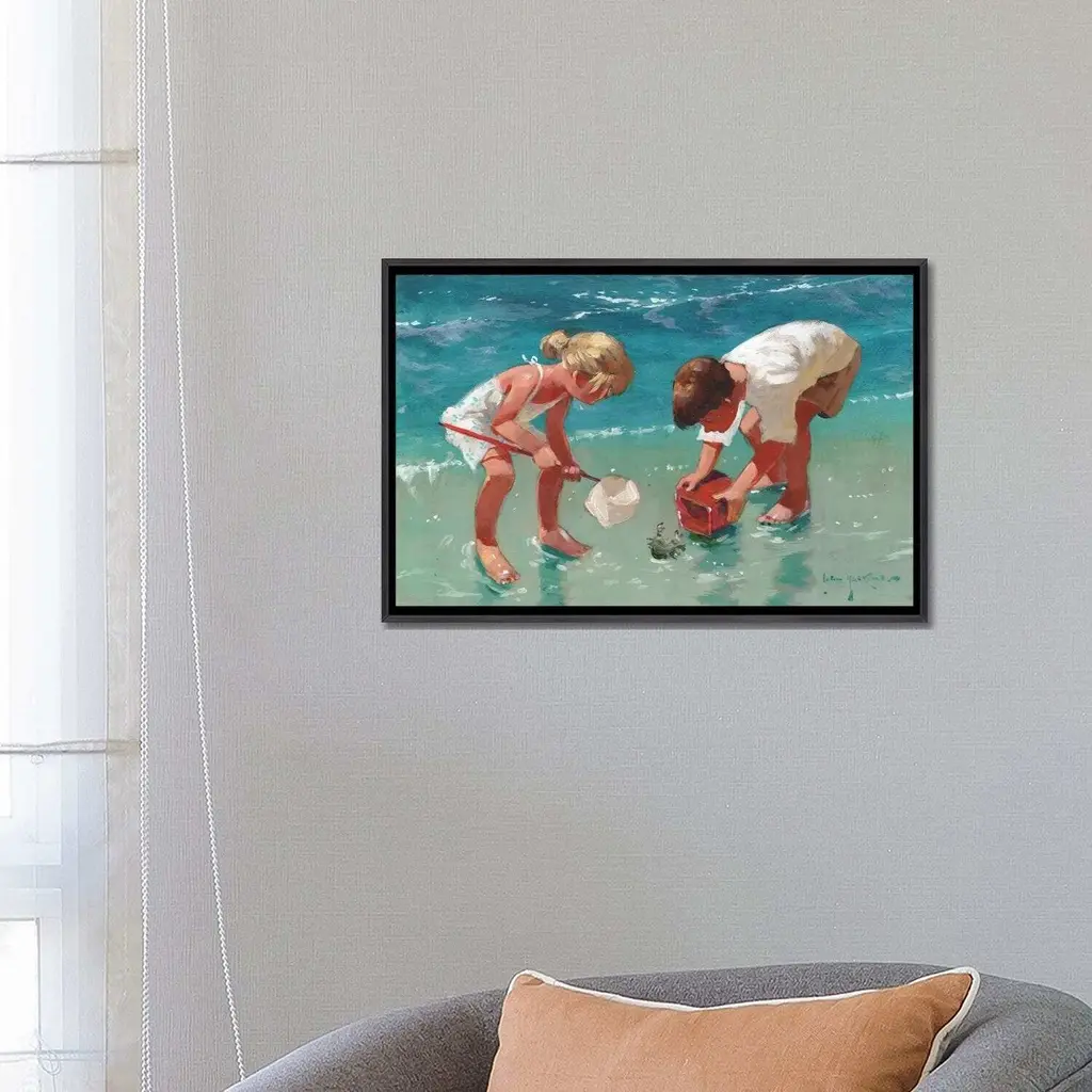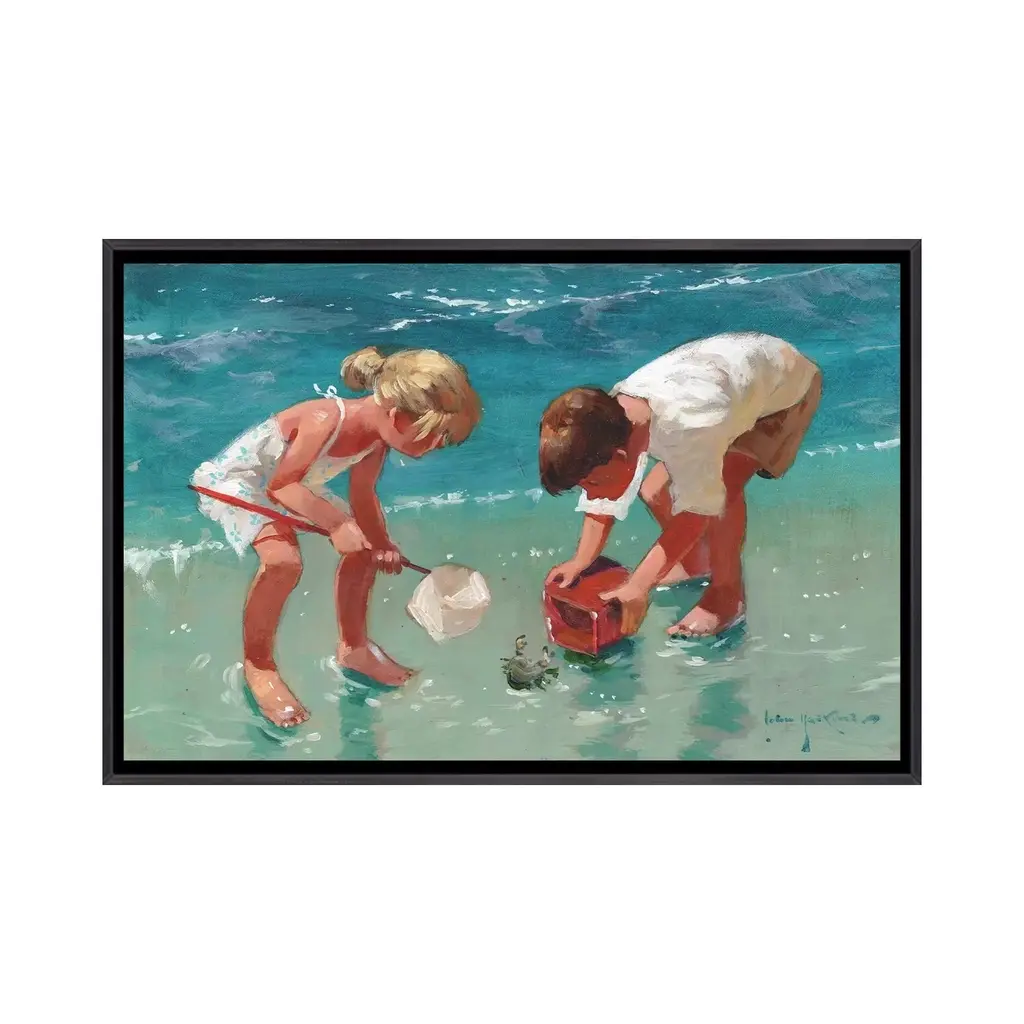 Icanvas "Kids And Crab" By John Haskins Framed - Charcoal - 18x26