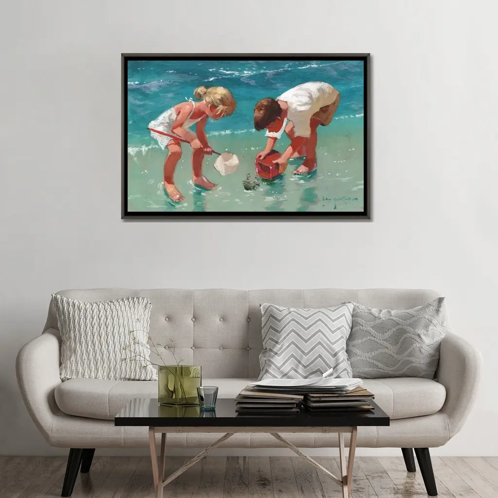 Icanvas "Kids And Crab" By John Haskins Framed - Charcoal - 26x40