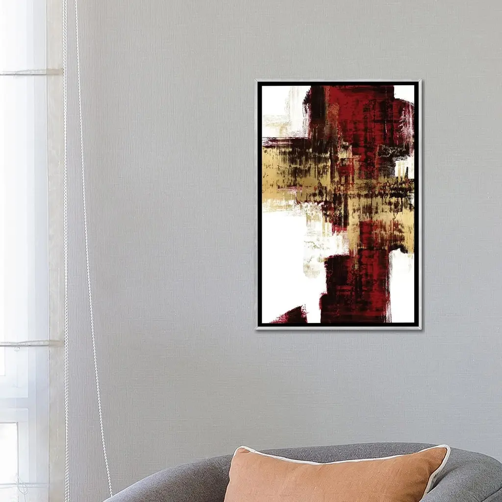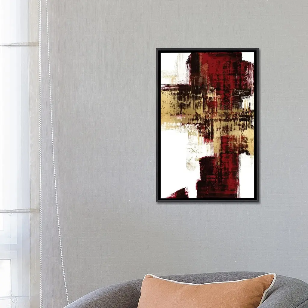 Icanvas "Kinetic Gold On Red I" By Alex Wise Framed - Ebony - 48x32