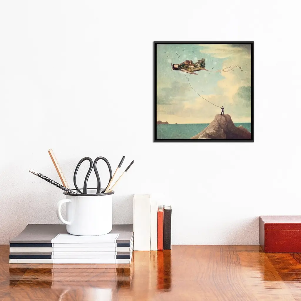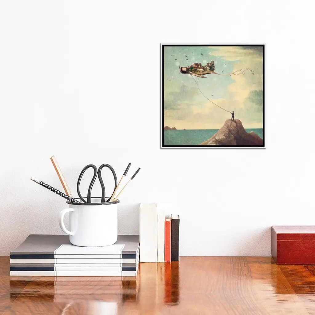 Icanvas "Kite Day" By Paula Belle Flores Framed Canvas Print - White - 12x12