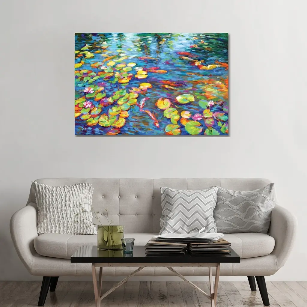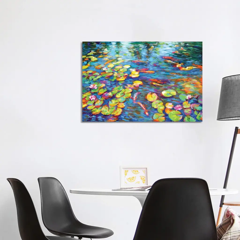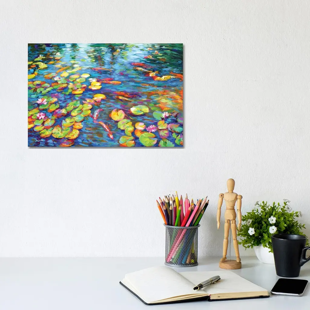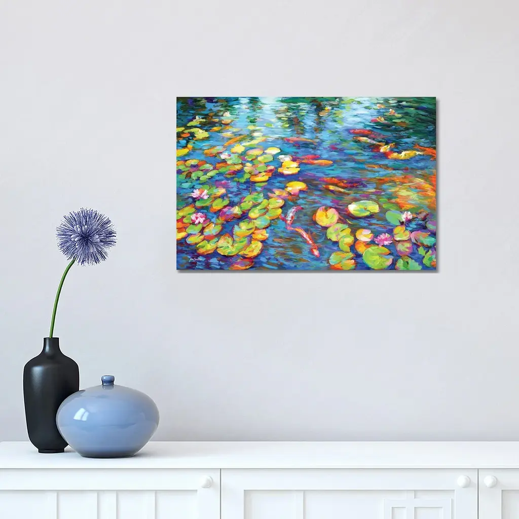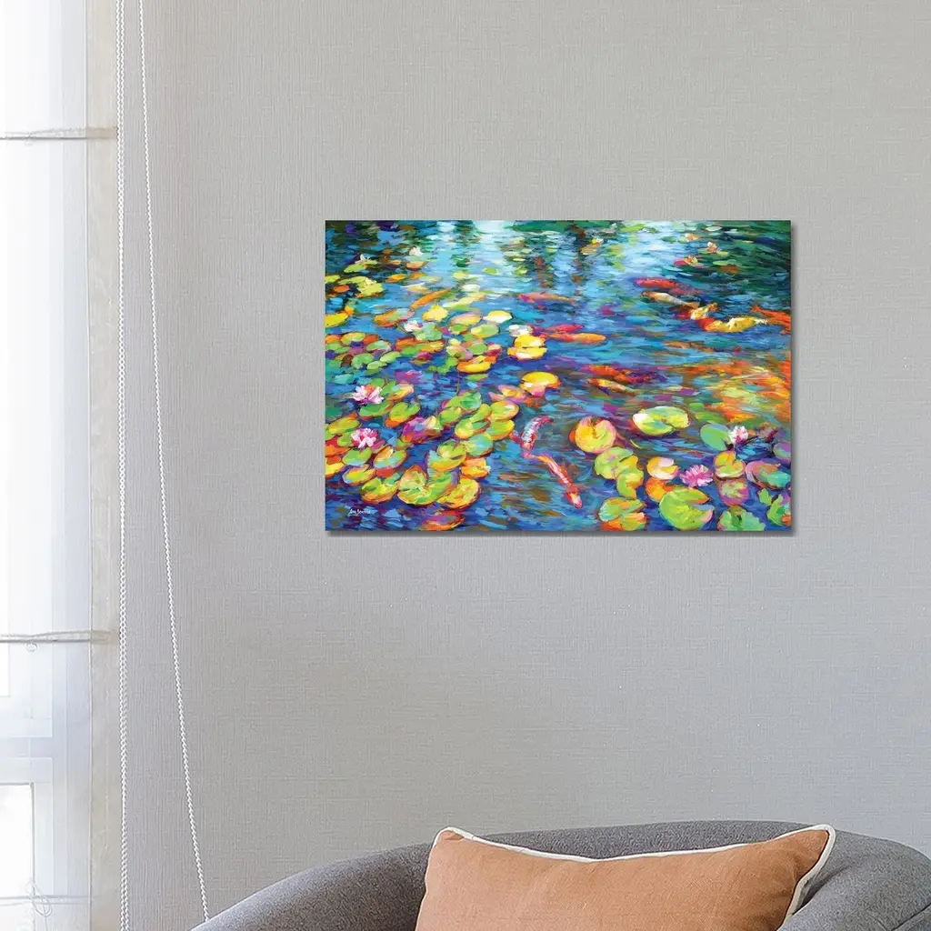 Icanvas "Koi Fish And Water Lilies" By Leon Devenice Canvas Print - 32x48x1.5