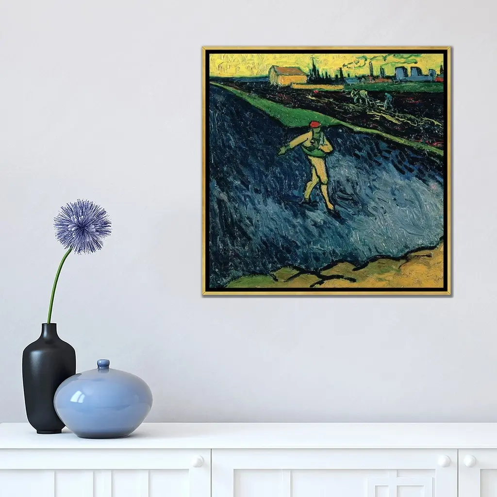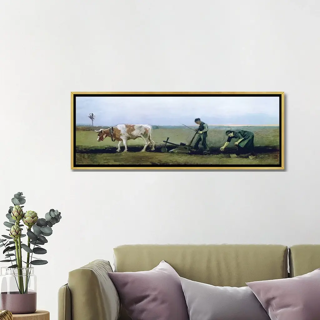 Icanvas "Labourer And Peasant Planting Potatoes, 1884 " By Vincent Van Gogh Framed Canvas Print - 16x48 - Gold