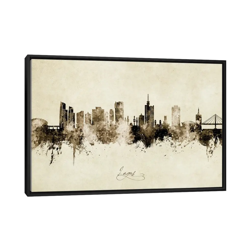 Icanvas "Lagos Nigeria Skyline Vintage" By Michael Tompsett Framed Canvas Print - Black - 18x26