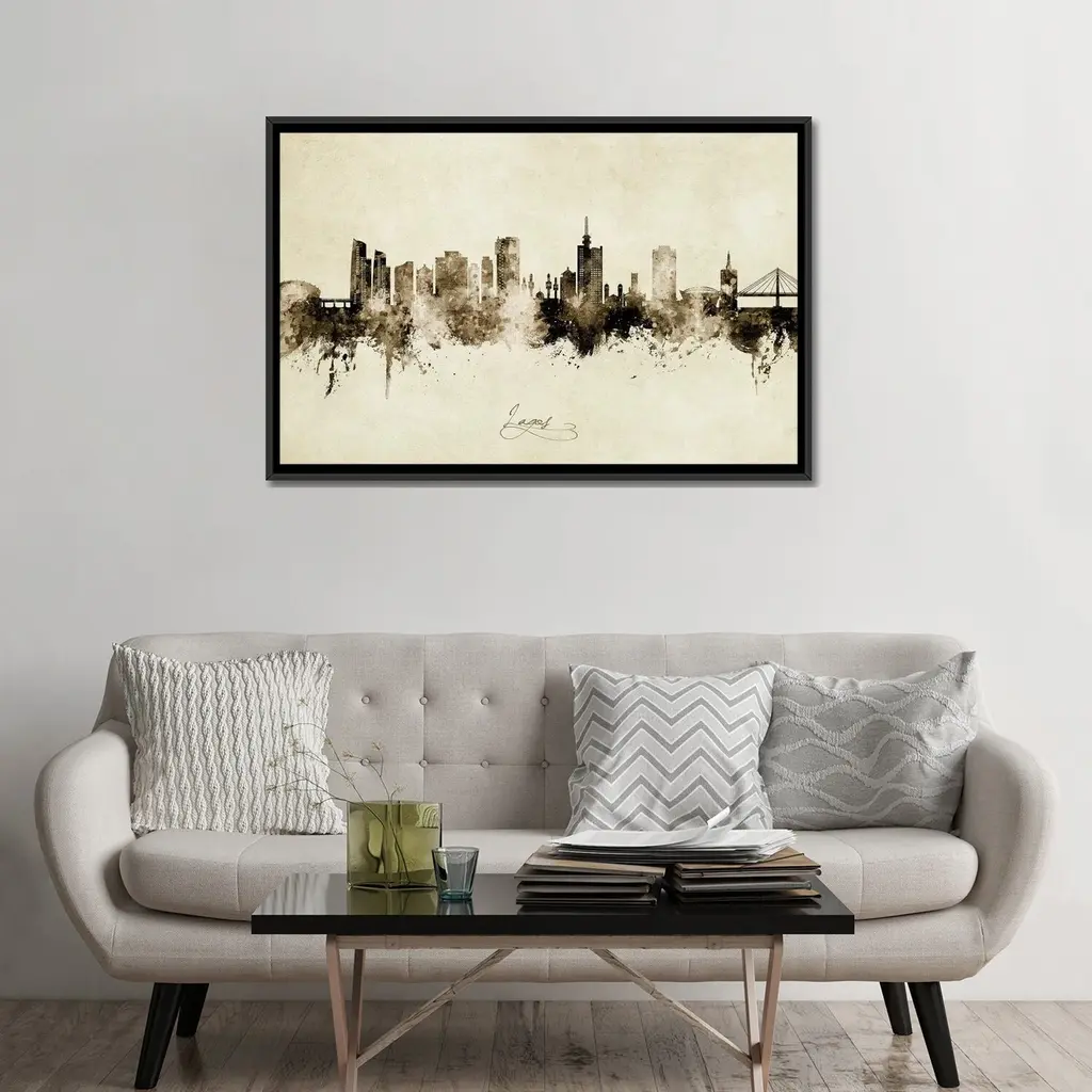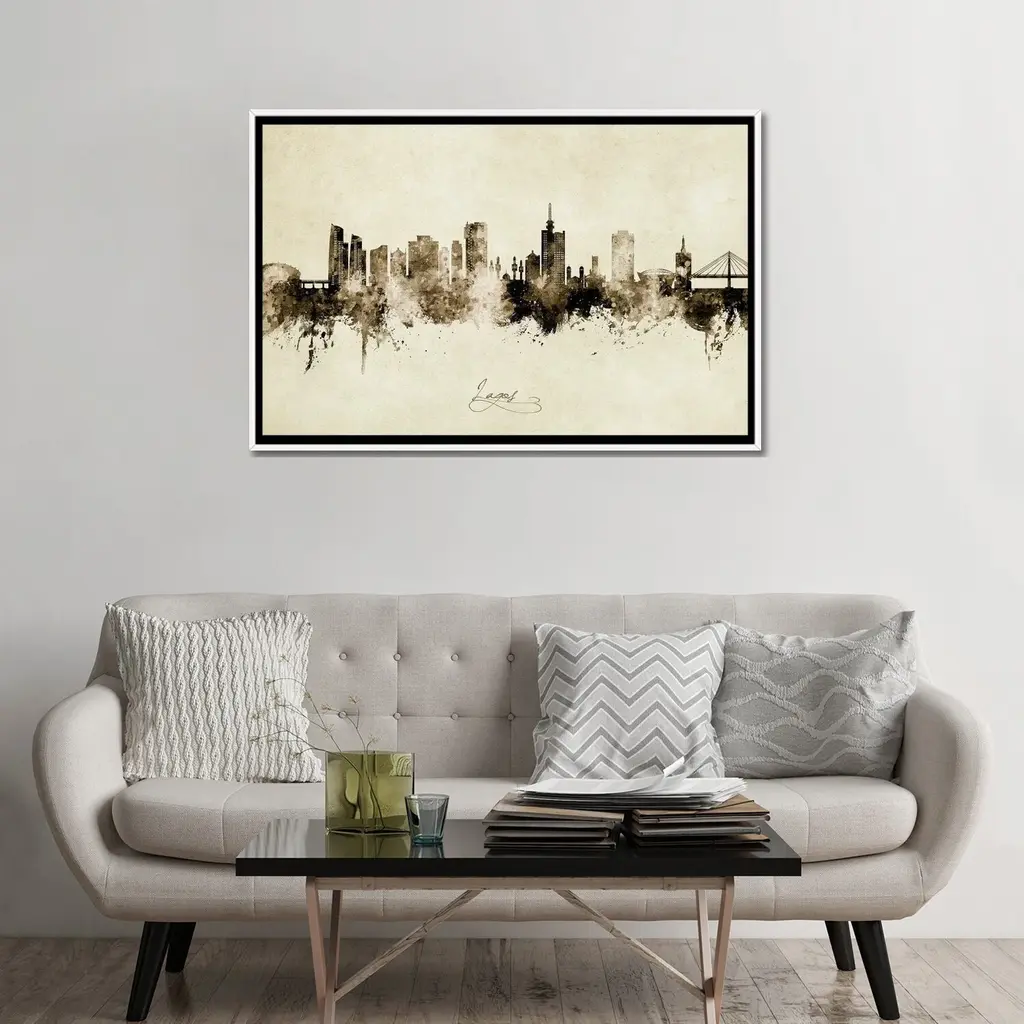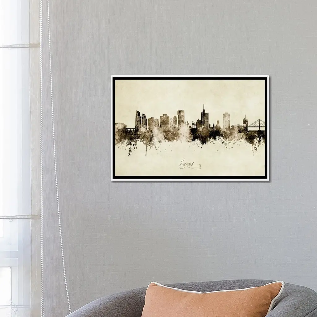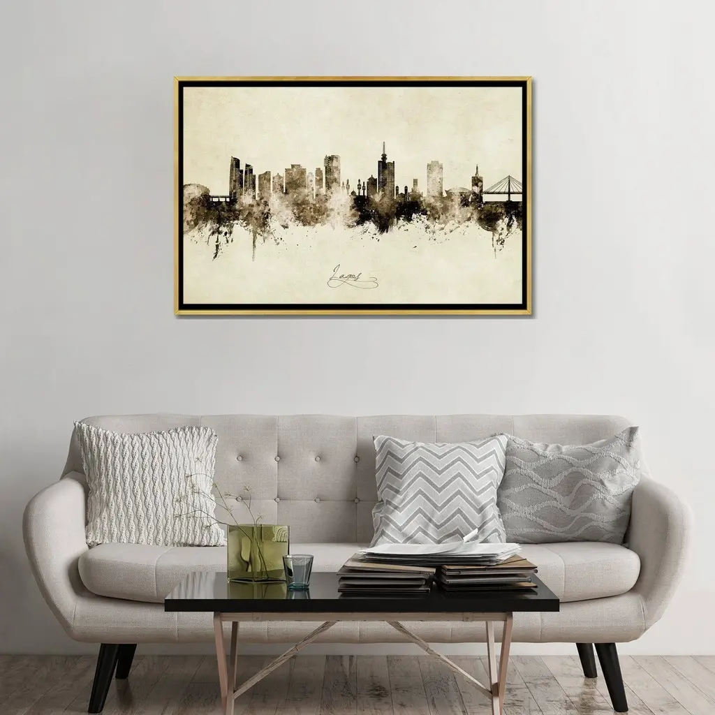 Icanvas "Lagos Nigeria Skyline Vintage" By Michael Tompsett Framed Canvas Print - Gold - 32x48