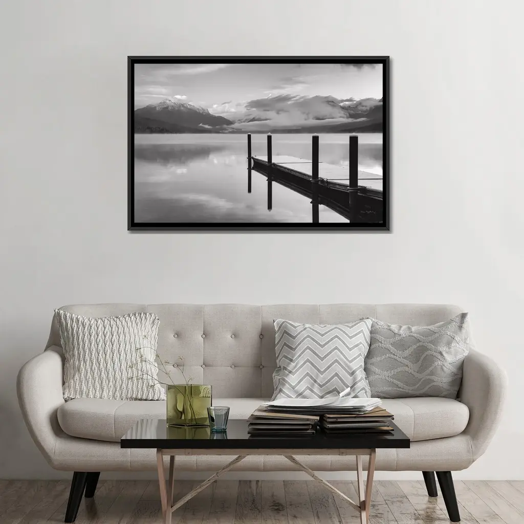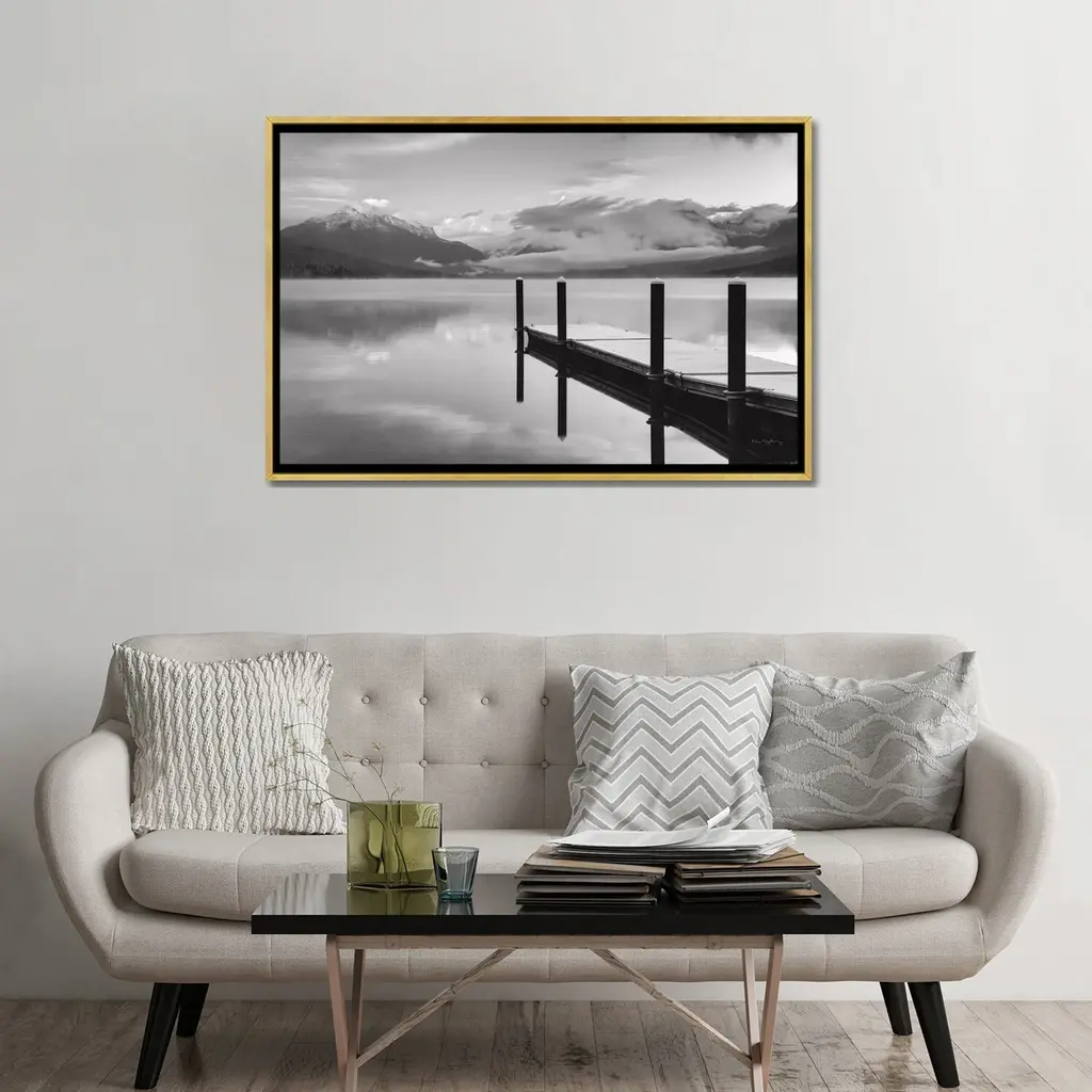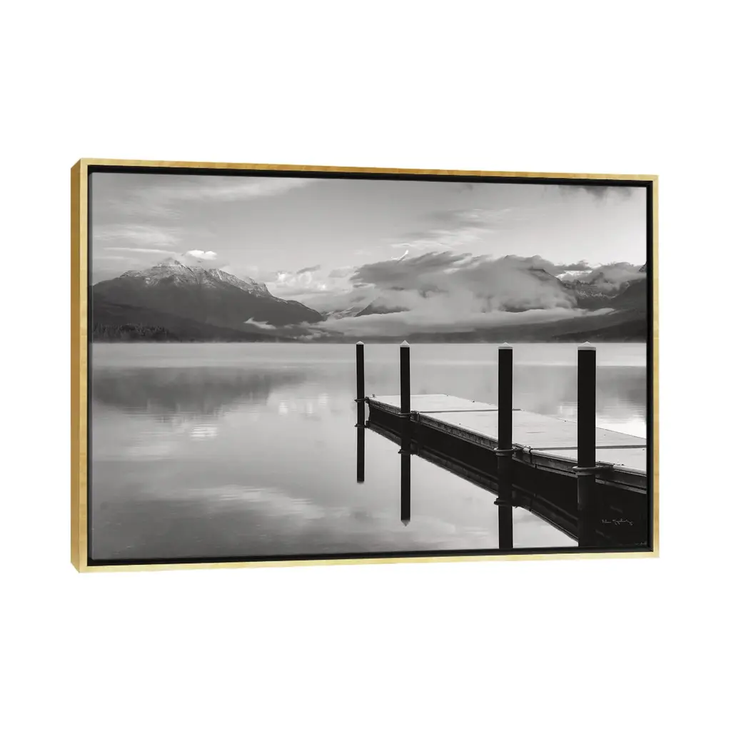 Icanvas "Lake Mcdonald Dock In Black & White" By Alan Majchrowicz Framed Canvas Print - White - 26x40