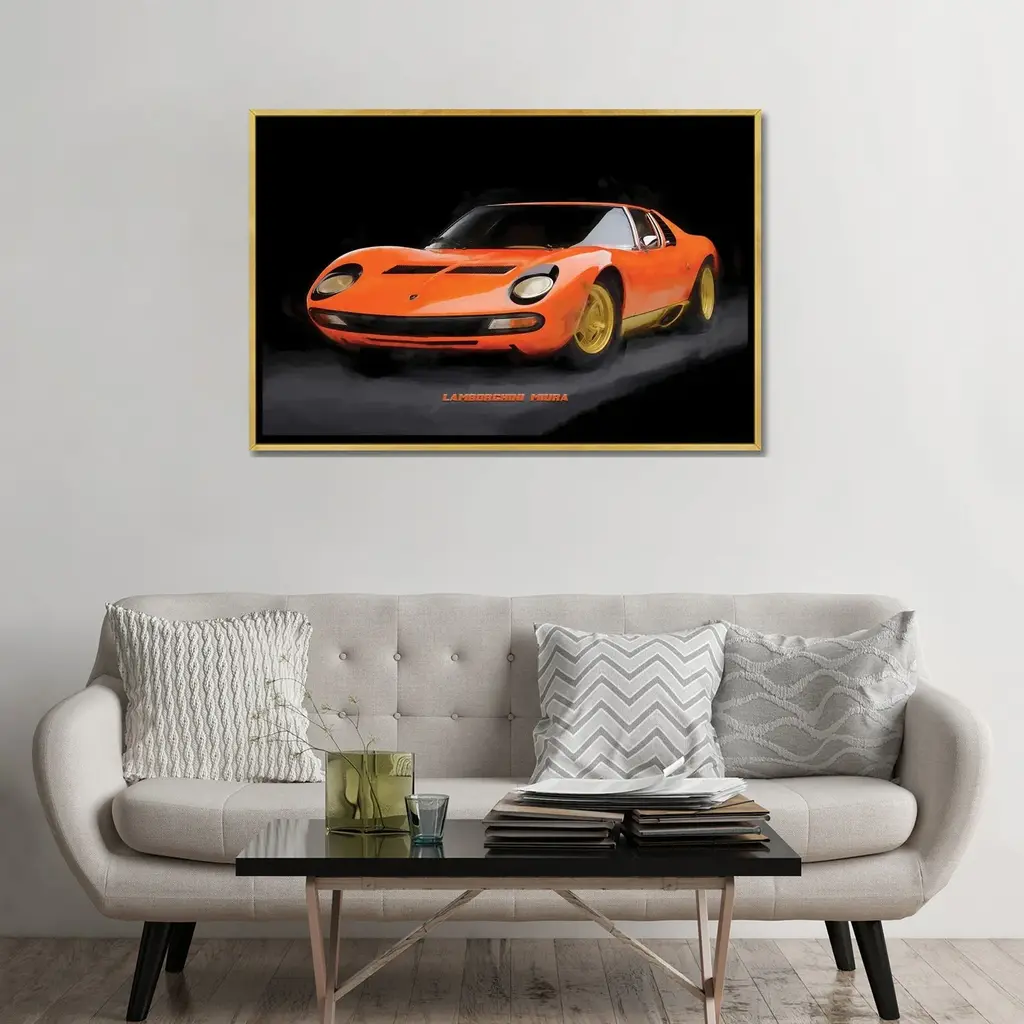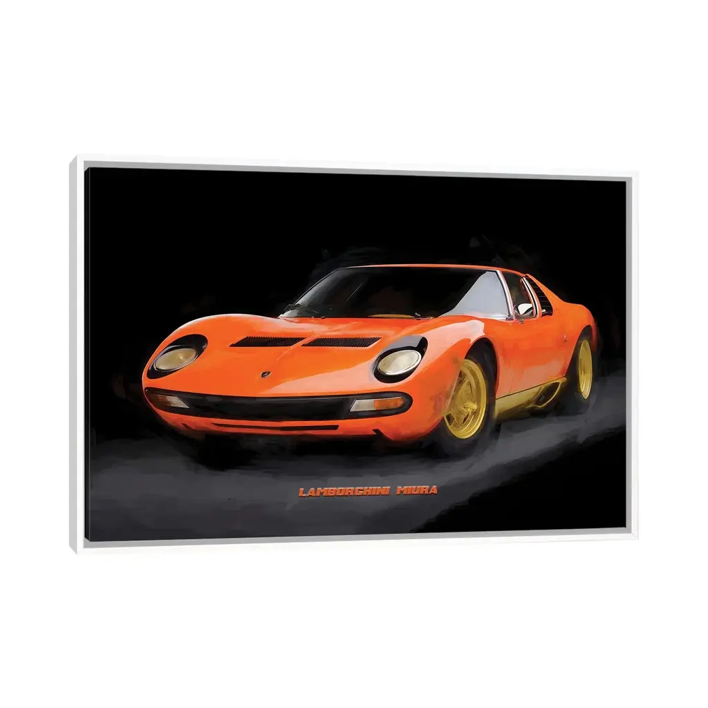 Icanvas "Lamborghini Miura In Watercolor" By Paul Rommer Framed Canvas Print - White - 26x40