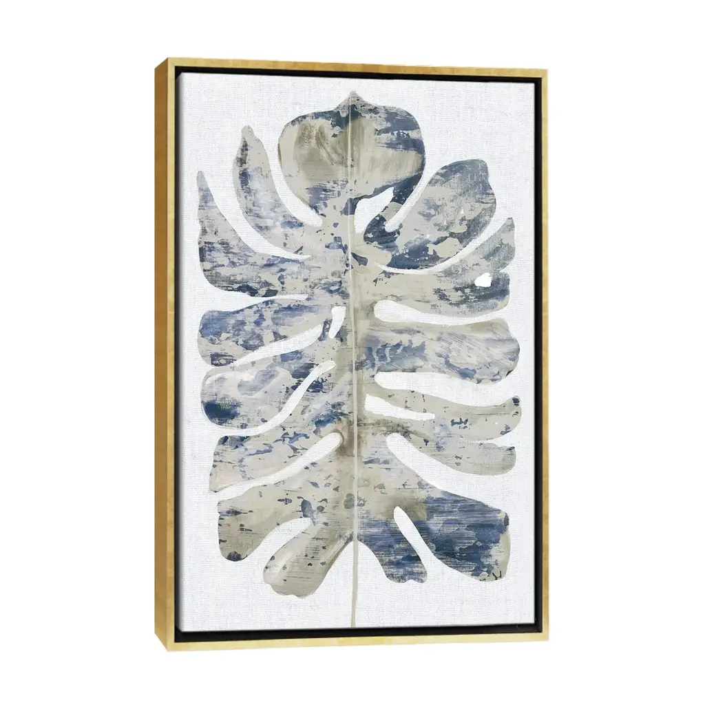 Icanvas "Large Indigo Leaf I" By Eva Watts Framed - Black - 26x18